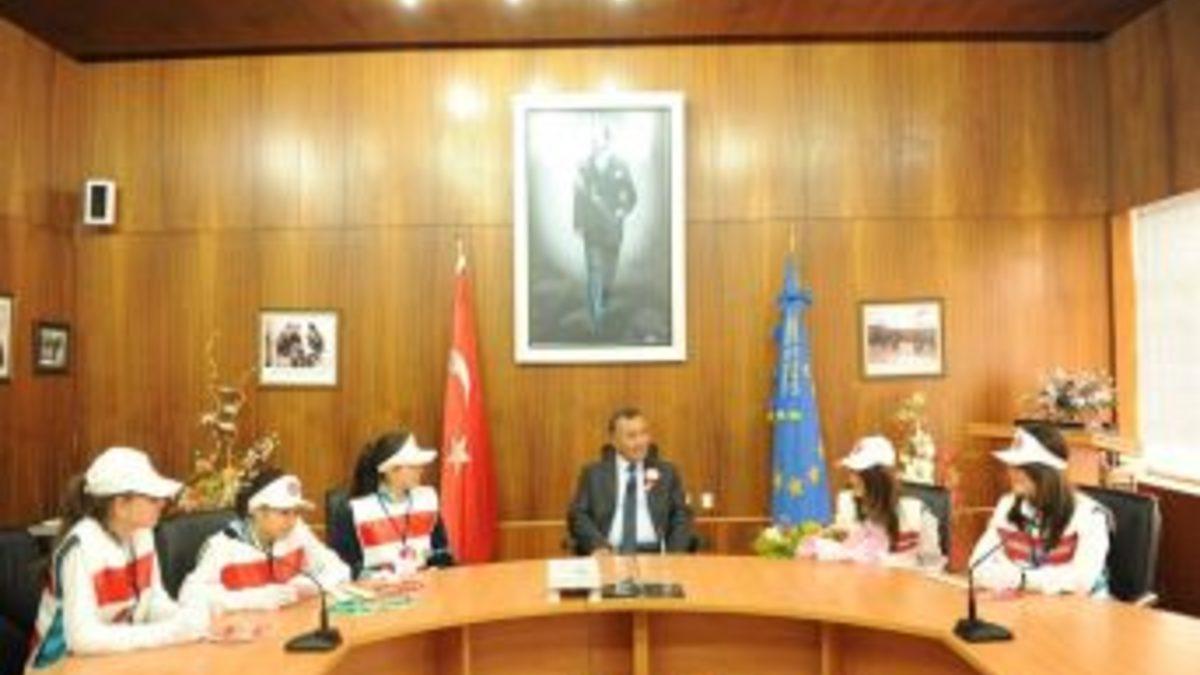 Karayolu Trafik Güvenliği Günü nedeniyle okul geçit görevlisi öğrencileri ve kutlama komitesi Vali Kenan Çiftçi'ye nezaket ziyaretinde bulundu.