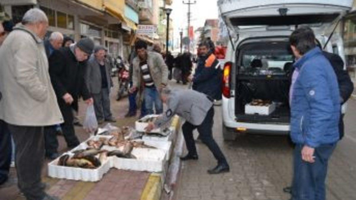Samsun’un Alaçam ilçesinde pazar yerinde ölçüleri tutmayan sazan balıklarına İlçe Gıda, Tarım ve Hayvancılık Müdürlüğü ekipleri tarafından el konuldu.İlçe Gıda, Tarım ve Hayvancılık Müdürlüğü ekipleri tarafından yapılan ölçümler doğrultusunda ölçüleri tutmayan 25 kg sazan balığı toplatıldı. Tarım Müdürlüğü ekipleri tarafından el konulan balıklar Alaçam Milli Emlak Servisine teslim edildi.