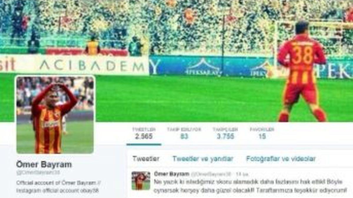 Kayserispor’un başarılı sol kanat oyuncusu Ömer Bayram, Fenerbahçe maçında takıma destek veren taraftarlara teşekkür etti.Dün akşam Kadir Has Stadyumu’nda Fenerbahçe ile karşı karşıya gelen sarı-kırmızılı ekip, Robin Van Persie’nin 29. dakikada serbest vuruştan attığı gol ile sahadan mağlup ayrılmıştı. 83. dakikada Mustafa’nın kırmızı kartla oyun dışında kalmasına rağmen, ataklarını sürdüren Kayserispor, istediği golü bir türlü bulamamıştı.Maçta sol kanatta 90 dakika boyunca büyük mücadele örneği sergileyen 38 sırt numaralı formayı giyen Ömer Bayram, twitter hesabından "Ne yazık ki istediğimiz skoru alamadık daha fazlasını hak ettik! Böyle oynarsak her şey daha güzel olacak!! Taraftarımıza teşekkür ediyorum!" mesajı paylaştı.