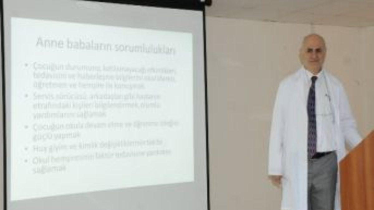 Çocuk Hastanesi Toplantı Salonu'ndaki toplantıda OMÜ Tıp Fakültesi Hematoloji Bilim Dalı Başkanı Prof. Dr. Davut Albayrak ve Hematoloji Bilim Dalı Öğretim Üyesi Doç. Dr. Canan Albayrak, hemofili hastalığı konusunda katılımcılara bilgi aktardı. Prof. Dr. Davut Albayrak ve Doç. Dr. Canan Albayrak, hemofili hastalığının belirtileri ve sonrasında izlenecek tedavi yöntemleri konusunda detaylı olarak katılımcıları aydınlattı. Soru-cevap şeklinde geçen toplantıda Prof. Dr. Davut Albayrak ve Doç. Dr. Canan Albayrak, bu hastalıkta erken teşhisin önemine değindi.