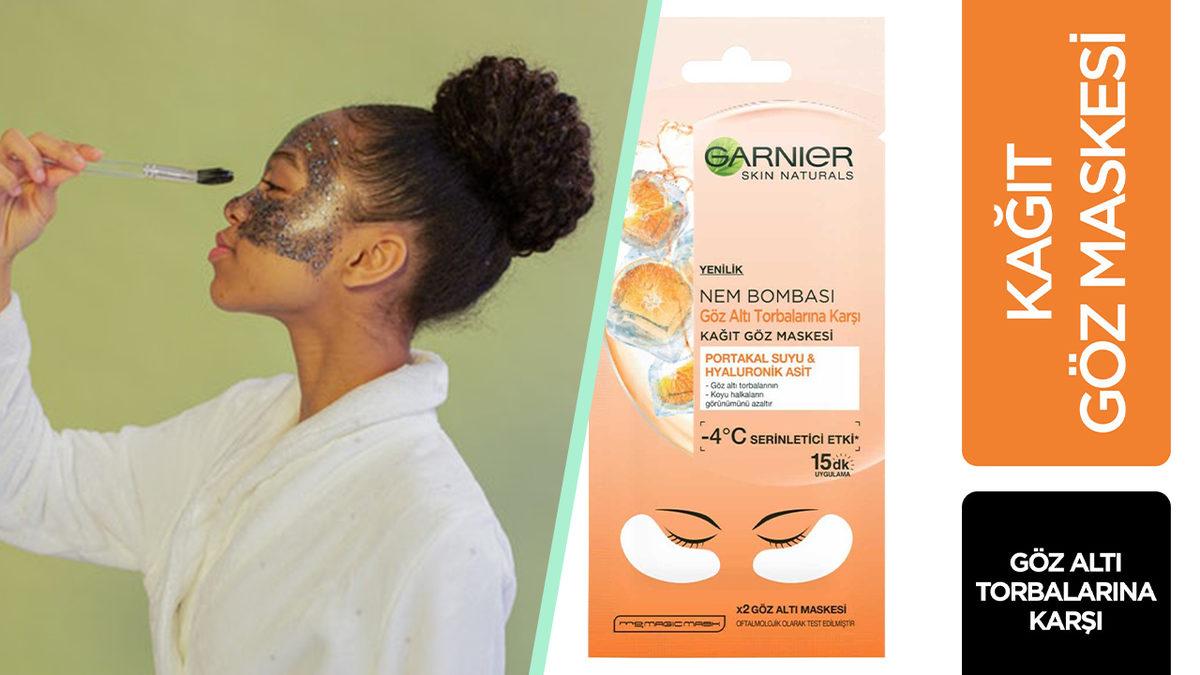 Kullanım kolaylığı ve yoğun bakım sağlayan bu tür ürünleri kullanmak oldukça keyifli. Garnier markasının kâğıt göz maskesi, göz altı torbalarına ve koyu halka görünümüne karşı anında nemlendirme sağlıyor. Portakal suyu ve hyalüronik asit içeren ürün, -4 derece serinletici etkide. Ultra hafif formülü, göz şişkinliklerini azaltırken daha ferah ve aydınlık bir görünüm yaratıyor. Ürünü kullanmadan önce buzdolabında bekleterek serinletici etkisini artırabilirsiniz. Yorgun görünen göz altlarından anında kurtulmak Garnier Kağıt Göz Maskesi ile artık daha kolay!