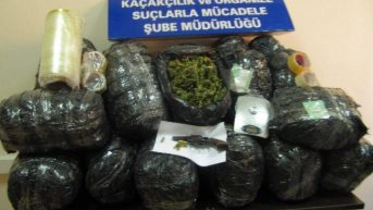 Antalya, Adana ve Diyarbakır'da eşzamanlı yapılan operasyonlarda, 36 kilo esrar ele geçirildi.Antalya Emniyet Müdürlüğü Kaçakçılık ve Organize Suçlarla Mücadele Şube Müdürlüğü (KOM) uyuşturucu madde ticareti yapan şahıs ve gruplara yönelik Antalya merkezli Adana ve Diyarbakır'da operasyon düzenledi. Operasyonda 10 kişi gözaltına alındı. Yapılan aramada toplam 36 kilo 143 gram esrar, 207 adet uyuşturucu extacy hap, 1 hassas terazi, ruhsatsız 1 tabanca, 7 fişek, ruhsatsız 1 tüfek, 11 fişek, gümrük kaçağı 412 paket sigara, 8 bin lira para ele geçirildi.Emniyette sorguları tamamlanan 10 kişi adliyeye sevk edildi.
