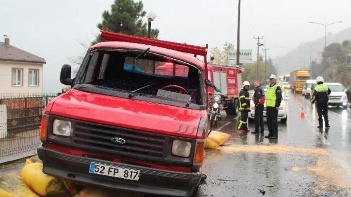 Ordu’da yağış sonrası kayganlaşan yolda meydana gelen trafik kazasında 1 kişi yaralandı.Kaza, Altınordu ilçesi Kumbaşı mevkisinde Ordu-Samsun Karayolu üzerinde saat 13.30 sıralarında meydana geldi. Edinilen bilgiye göre, Kadir Demirhan idaresindeki 52 FP 817 plakalı talaş yüklü kamyonet, kayganlaşan yolda direksiyon hakimiyetinin kaybedilmesi sonucu refüjlere çarparak takla attı. Kazada hafif yaralanan kamyonet sürücüsü Kadir Demirhan, 112 Acil Servis ekipleri tarafından olay yerinde tedavi edildi. Olay yerine gelen Ordu Büyükşehir Belediyesi İtfaiye ekipleri takla atam kamyoneti yoldan kaldırarak karayolunu trafiğe açtı. Kaza sonrası yarım saat boyunca kapalı kalan Ordu-Samsun karayolunda uzun araç kuyrukları oluştu.