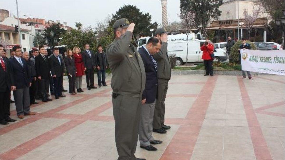 Edirne Orman İşletme Müdürlüğü tarafından düzenlenen törende İşletme Müdürü Önder Terzi Atatürk Anıtı’na çelenk sundu. Saygı duruşunda bulunulması ve İstiklal Marşı’nın okunmasının ardından vatandaşlara 500 adet çam fidanı dağıtıldı. Vatandaşlar, çam fidanlarına yoğun ilgi gösterirken İşletme Müdürü Terzi, hafta boyunca çeşitli etkinliklerde bulunacaklarını belirtti.