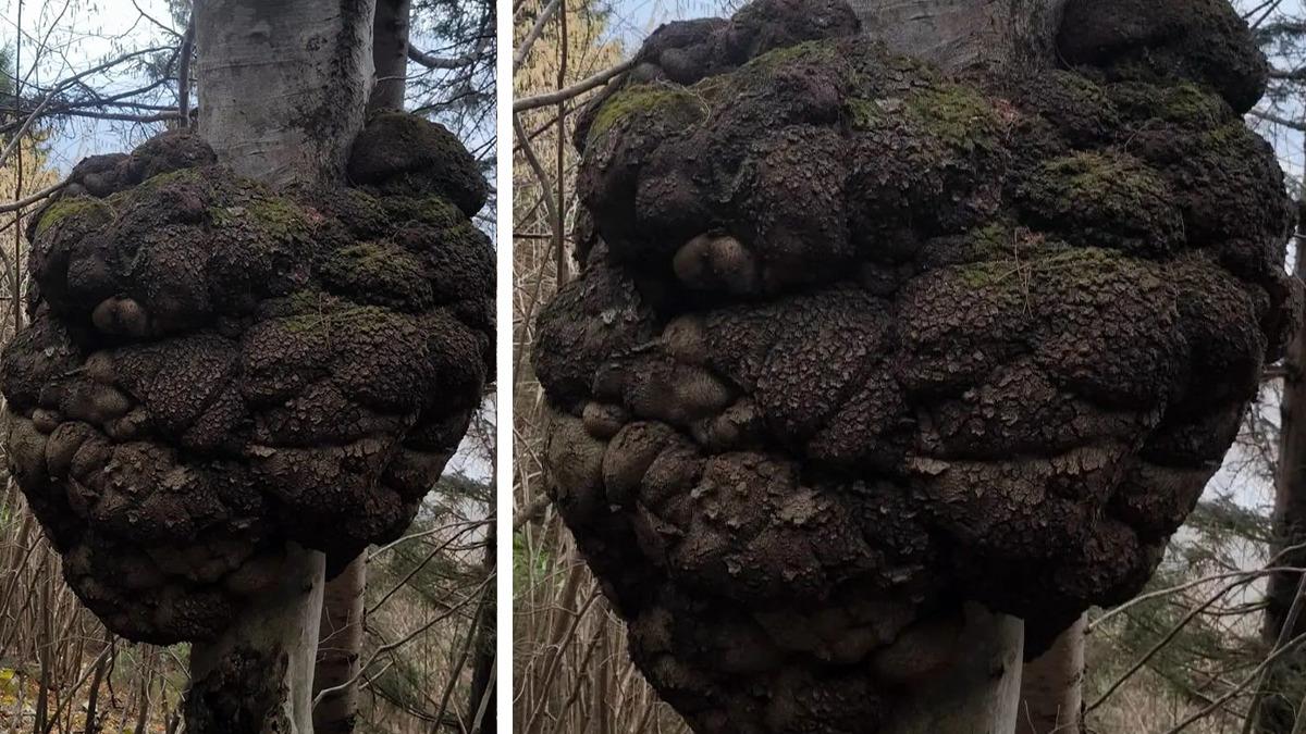 Ağacın bakteri, mantar veya fiziksel yaralanmalara karşı kendini korumak için hücrelerini kontrolsüzce büyütmesiyle oluşan bu kütle, Araklı’da bulunan bu örnekte devasa boyutlara ulaşmış durumda.