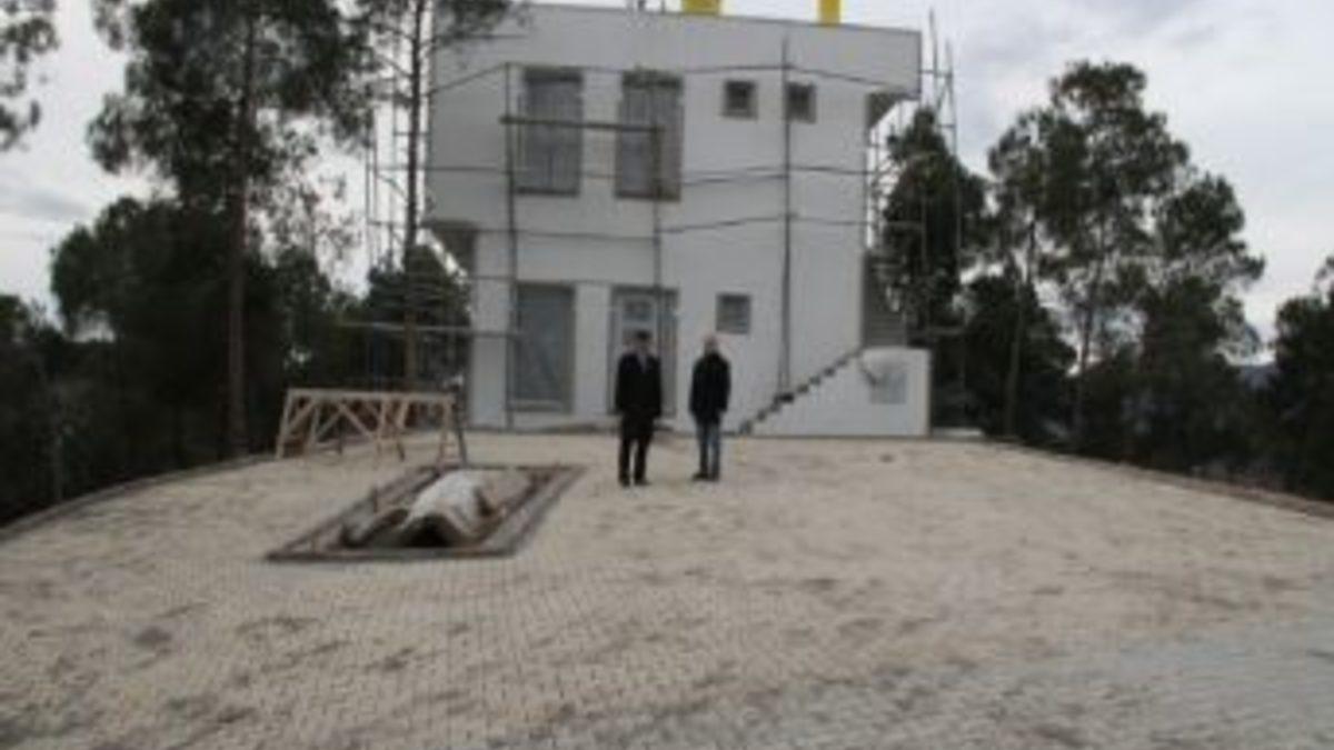 Çorum’un Osmancık Belediyesi tarafından Arafat tepesinde yapılan seyir evi için çalışmalar sürürüyor.