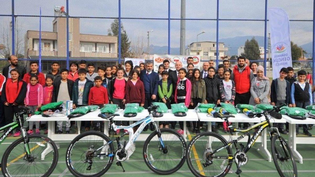 Kalkınma Bakanlığı tarafından finanse edilen, Osmaniye Valiliği tarafından koordinasyonu sağlanan Sosyal Destek Programı (SODES) çerçevesinde Osmaniye Gençlik Hizmetleri ve Spor İl Müdürlüğü’nce yürütülen “Umudunu Sporla Taşımak” projesi kapsamında gençlere spor malzemeleri dağıtıldı.Osmaniye Gençlik Merkezinde düzenlenen spor malzemelerinin dağıtımı öncesinde Gençlik Hizmetleri ve Spor İl Müdürü Ökkeş Demir tarafından Vali Ömer Faruk Coşkun’a proje hakkında bilgi verildi. Demir, “Amacımız; spor yapmak istemelerine rağmen maddi imkânsızlıklardan veya tesislere uzak mesafelerde ikamet etmelerinden dolayı tesislerimizden yeterince yararlanamayan gençlerimizin kültürel ve sportif faaliyetler yapmalarına olanak sağlamaktır. Proje kapsamında gençlerimize ve çocuklarımıza masa tenisi, atletizm, bisiklet, satranç, güreş, teakwondo, badminton ve basketbol branşlarında eğitimleri verilecektir” dedi.Vali Ömer Faruk Coşkun, “Gençlerimizin spor yapmalarının, hem zihinleri hem de bedenleri için oldukça faydalı olacağına inanıyorum. Güzel hazırlanmış bir proje. Katkısı ve emeği olanlara teşekkür ediyorum. Evlatlarımıza da eğitim ve spor hayatlarında başarılar diliyorum” diye konuştu.Etkinlikte gençlere ve çocuklara bisiklet, satranç seti, badminton raketi ve eşofman takımı dağıtıldı. Vali Ömer Faruk Coşkun, Gençlik Hizmetleri ve Spor İl Müdürü Ökkeş Demir bisikletlere binerek kısa bir tur attılar.