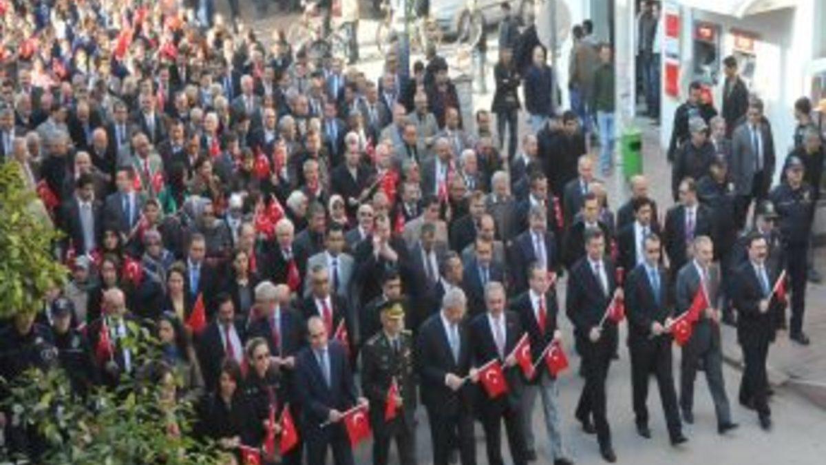 Osmaniye Belediyesi önünden mehter takımı eşliğinde başlayan yürüyüşe Osmaniye Valisi Celalettin Cerrah, Garnizon Komutanı Muharebe Kurmay Albay Ersin Kaya, Belediye Başkanı Kadir Kara, Cumhuriyet Başsavcısı Mustafa Yabanoğlu, Korkut Ata Üniversitesi Rektörü Prof. Dr. Orhan Büyükalaca, İl Emniyet Müdürü Tayfur Erdal Ceren, siyasi partilerin temsilcileri, kamu kurum ve kuruluşlarının yöneticileri, mahalle muhtarları ile çok sayıda vatandaş katıldı.