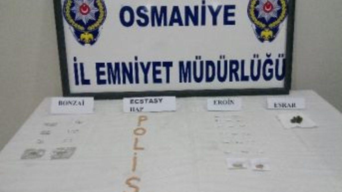 Osmaniye'de torbacı tabir edilen uyuşturucu satıcılarına yönelik operasyonda 10 kişi hakkında adli işlem yapıldı.Alınan bilgiye göre, Osmaniye İl Emniyet Müdürlüğü Kaçakçılık ve Organize Suçlarla Mücadele Şube Müdürlüğü Narkotik Büro Amirliği görevlilerince, uyuşturucu madde ticareti yapan sokak satıcılarına yönelik yapılan çalışmalar kapsamında, 59 çizik (23 gram) eroin maddesi, 9 paket (2,18 gram) bonzai maddesi, 3 paket (48,82 gram) esrar maddesi, 81 adet extacy hap ele geçirildi.Yapılan operasyonda olayla ilgili 10 şüpheli şahıs hakkında “Uyuşturucu veya uyarıcı madde imal ve ticareti” suçlarından adli işlem yapıldı.