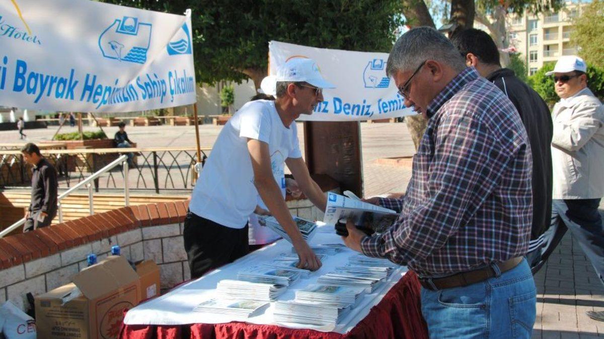 Çevre gönüllüsü otel çalışanları, 'mavi bayrak', 'çevre temizliği' ve 'geri dönüşümün önemi' üzerine bilgilendirme yaptı. Antalya'nın Manavgat ilçesinde Türkiye Çevre Eğitim Vakfı(TÜRÇEV) ve Alba Otel çalışanları Cumhuriyet Meydanı'nda açtıkları stantla çevre temizliğinin korunması ve atıkların geri dönüşümüne yönelik broşür dağıtarak bilgi verdi. Konuyla ilgili basın açıklaması yapan Alba Otel Mavi Bayrak Sorumlusu İsmail Orçan, otellerinin Uluslararası Çevre Eğitim Vakfı(FEE) kriterlerini yeri getirdiği için mavi bayraklı olduğunu söyledi. Günümüzde mavi bayraklı otelin marka değerinin yüksek olduğunu belirten Orçan, bu bağlamda otellerinin çevre bilinçlendirme etkinliklerine özel önem verdiklerini kaydetti. Çevre bilinçlendirme çalışmalarıyla her atığın çöp olmadığı bilincini toplumda yaygınlaştırmayı hedeflediklerini belirten Orçan, "Bir ton gazete kağıdın geri kazanılması 17 ağacın kesilmesini önlüyor. Geri kazınılan kağıt sayesinde üretim aşamasındaki hava kirliliği yüzde 74, su kirliliği de yüzde 35 azalıyor. Eski kağıtlardan yeniden kağıt elde etmekle yüzde 50 enerji tasarrufu sağlanmış oluyor. Amerika'nın yalnızca bir pazar günü gazetelerinin kağıdı için 500 bin ağaçlık ormanın kesilmesi gerekir. Bir alüminyumun geri kazanılması üretimde hava kirliliğinin yüzde 94, su kirliliğini yüzde 97 oranında azaltır. Cam atıklar doğada bin yıl, alüminyum atıklar 500 yıl, plastik malzeme bin yıl, çiklet 5 yıl, plastik tabak 500 yıl, pet şişe 400 yıl kağıt ve gazete 3 ay ve sigara izmariti filtresi 2 yılda doğada kayboluyor." şeklinde konuştu.