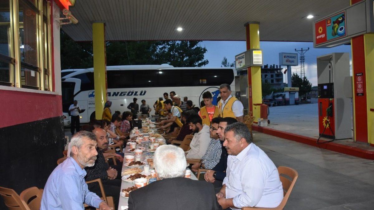 Van istikametine doğru yolculuk yapan yolcu otobüsü, Kahta girişinde bulunan petrol istasyonuna girdi. Burada dernek üyeleri tarafından yolculara iftarlık ikramında bulundu.