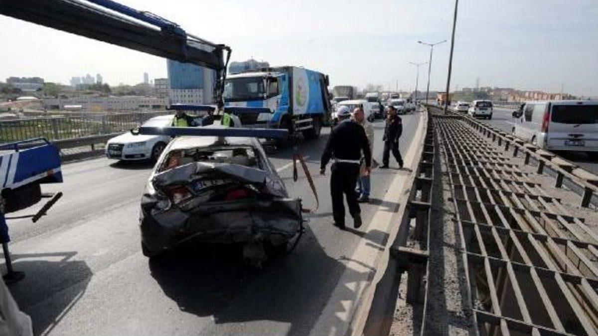 Mustafa ÖZDABAK/İSTANBUL, Olay yerine sağlık ekipleri, polis ve itfaiye sevk edildi. Bu sırada kapanan şerit nedeniyle, trafikte yoğunluk yaşandı. Polis aracına bindirilen Özlem Akerler, “Otomobil bir anda kilitlendi” dedi. Kazayı, karşı yöndeki sürücülerin yavaşlayıp izlemesi nedeniyle, trafik yoğunluğu oluştu. Hasarlı otomobilin çekici ile kaldırılması ve itfaiyenin yolu temizlemesinden sonra, yol trafiğe açıldı.