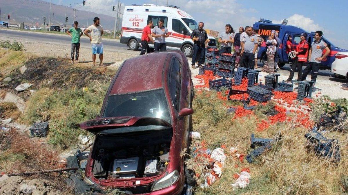 Hatay’ın Antakya ilçesinde meydana gelen trafik kazasında 1’i çocuk 3 kişi yaralandı.Alınan bilgiye göre, Antakya-Reyhanlı Çevreyolu’nda kavşaktan dönerken direksiyon hakimiyetini kaybeden 32 KB 303 plakalı otomobil, yol kenarındaki domates kasalarına çarptı.Kazada kimliği belirlenemeyen sürücü ile birlikte domates kasaları önünde bulunan biri çocuk 2 kişi yaralandı.Çarpmanın şiddetiyle kasa içerisindeki domatesler yola savruldu.Kaza sonrasında olay yerine gelen UMKE, 112 Acil ve itfaiye ekipleri, sürücüyü kaza yaptığı araçtan çıkararak ambulansa bindirdi. Yaralılar Hatay Devlet Hastanesi’ne kaldırılarak tedavi altına alındı.