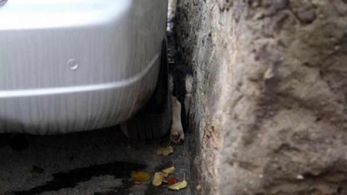 İZMİT Bekirdere Mahallesi Ozan Sokak'ta oturan Öner Kula, evinin önünden gelen havlama sesini duyarak dışarı çıktı. Öner Kula, evinin önünde park halinde bulunan 77 AL 702 plakalı otomobili ile aynı yerdeki bahçe duvarı arasına sıkışan sokak köpeğini görünce itfaiyeyi arayarak yardım istedi. Olay yerine gelen itfaiye ekipleri, araç ile duvar arasından geçmeye çalışırken sıkışan köpeği kurtarmak için çalışma başlattı. Hidrolik makine kullanılarak zincirle bağlanan otomobil yana doğru çekilerek köpek sıkıştığı yerden kurtarıldı. Vücudunda herhangi bir yara olmayan köpek koşarak uzaklaştı.