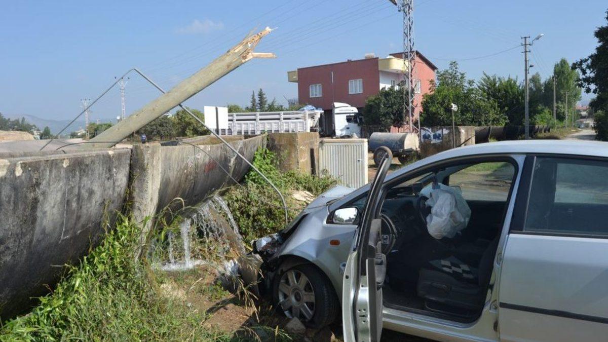 Adana Kozan’da bir otomobilin kanalete çarpması sonucu meydana gelen trafik kazasında bir kişi yaralandı. Tavşantepe Mahallesi Toki yol kavşağında meydana gelen kazada, Yılmaz Şaşoğlu yönetimindeki 01 RT 509 plakalı otomobil, kontrolden çıkarak yol kenarında bulunan Telekom direğine, ardından sulama kanaletine çarparak durabildi.Kazadan yaralanan sürücü Şaşoğlu kendi imkanları ile Kozan Devlet Hastanesi acil servisine gitti. Kaza ile ilgili soruşturma başlatıldı.
