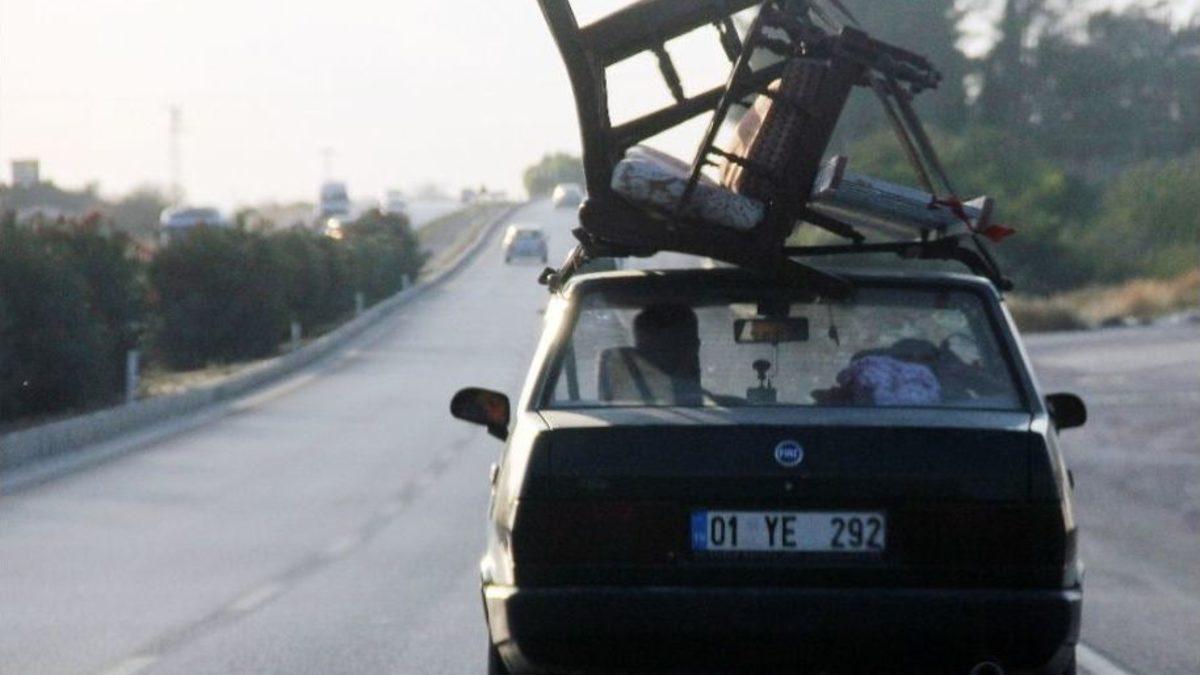 Adana’da tavanında kanepe, koltuk ve merdiven taşınan otomobil görenleri şaşırttı.D-400 karayolunun Adana-Mersin güzergahında otomobilinin tavanında 1 kanepe, 2 koltuk ve bir de inşaat merdiveni taşıyan sürücü görenleri hayrete düşürdü. Otomobilini bir kamyonet gibi taşımacılıkta kullanan sürücü, trafiğin en kalabalık olduğu karayolunda çevredekilerin şaşkın bakışlarına aldırmadan yoluna devam etti.
