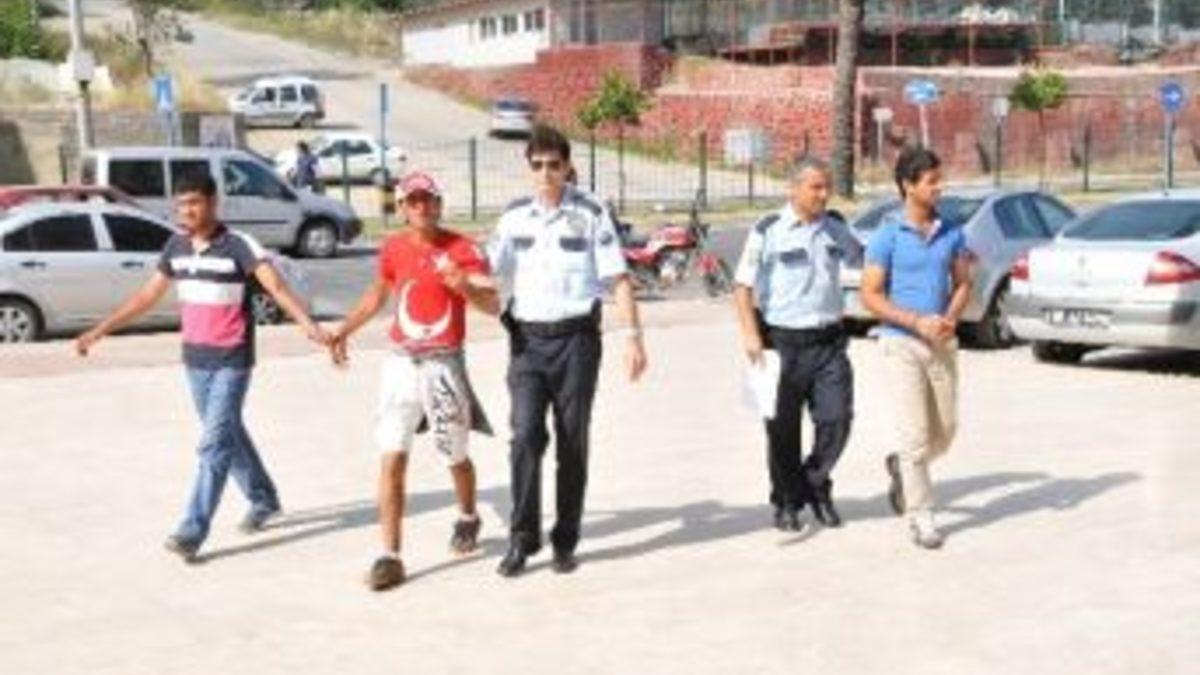 Antalya’nın Alanya ilçesinde park halindeki otomobilin içinden hırsızlık yaptığı iddiasıyla yakalanan 3 kişi, çıkarıldıkları mahkemece tutuklandı.Edinilen bilgiye göre olay, Atatürk Caddesi Atatürk Bulvarı üzerinde bir otelin önünde meydana geldi. M.S.D.’ye ait 07 NEC 92 plakalı otomobilden bir yazarkasa, iki güneş gözlüğü ve el feneri çaldığı iddia edilen Sercan K.(20), Mehmet S.(20) ve Hikmet D.(40), Asayiş Büro Amirliğine bağlı hırsızlık ekiplerince kıskıvrak yakalanarak gözaltına alındı.Saray Polis Merkezi'nde ifadeleri alınan 3 şüpheliden Hikmet D.’in İstanbul Cumhuriyet Savcılığınca uyuşturucu suçundan arandığı tespit edildi. Üç şüpheli polis gözetimi altında Alanya Adliyesi Nöbetçi Cumhuriyet Savcılığına çıkartıldı. Üç şüpheli tutuklanma istemiyle nöbetçi mahkemeye sevk edildi. Nöbetçi mahkemece tutuklanan Sercan K., Mehmet S. ve Hikmet D. Alanya L Tipi Kapalı Cezaevi’ne gönderildi.