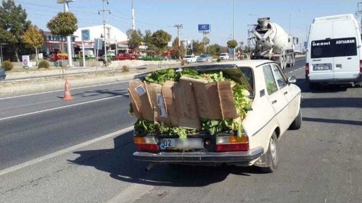 Adıyaman’da, bir sürücü kullandığı otomobilin ön ve arka koltuklarının haricinde bagaja da yüklediği marullar görenleri hayrete düşürdü.Gölbaşı istikametinden Adıyaman istikametine seyreden bir otomobilin sürücüsü aracın ön ve arka koltuklarına marul yükledi. Otomobil içerisinde marulları koyacak yer kalmayınca sürücü bu defa marulları otomobilin bagajına yüklemeye başladı. Aşırı yük nedeniyle otomobilin bagaj kapısı kapanmayınca sürücü, marullar dökülmesin diye bagajın etrafına yerleştirdiği çıta ve kartonlarla önlem aldı. Hem dikkat çeken hem de trafiği tehlikeye düşüren otomobil Adıyaman sokaklarında bir süre ilerledikten sonra gözden kayboldu.