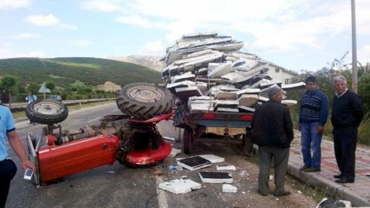 Ali ÇEVİKBAŞ/EĞİRDİR Kaza, saat 15.30 sıralarında Eğirdir- Gelendost yolunda meydana geldi. Ahmet Görgün'ün kullandığı 32 YU 823 plakalı otomobil, sollama yaptığı sırada Murat Akkanat'ın kullandığı 32 ES 429 plakalı köpük yüklü traktöre çarptı. Çarpışmanın etkisiyle traktör ters dönerken, otomobilde hasar oluştu.