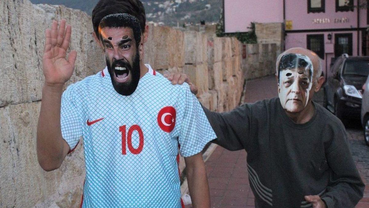 Yılmaz Vural maskesi takan tiyatrocu Bahtiyar Keskin, İzlanda maçında oyundan çıkarken gülen Arda Turan’ın maskesini takan kişiyi elinde sopayla sokak sokak kovaladı.Daha önce Canan Karatay’ı "bal zararlı" dediği için arı kıyafeti giyerek protesto eden Bursalı tiyatro sanatçısı Bahtiyar Keskin, bu defa Türkiye Milli Takımı’nın 3-0 yenildiği İzlanda maçında oyundan çıkarken gülen Arda Turan’a tepki gösterdi. Yüzüne Yılmaz Vural’ın resminin bulunduğu maskeyi katan Keskin, Bursa sokaklarında Arda Turan’ın maskesini takan kişiyi kovaladı. Bursalılar, Arda Turan’ı kovalayan Keskin’e destek vererek, tezahürat yaptı.Ampüte Milli Takımı’nın yüreğini ortaya koyarak Avrupa şampiyonu olduğunu ifade eden Bahtiyar Keskin, "Milli takımın 3-0 yenildiği İzlanda maçında oyundan çıkan Arda Turan taraftarlara sırıtıyor. Ben bir Türk olarak bu durumu protesto ettim. Arda Turan’ı Bursa sokaklarında Yılmaz Vural olarak kovaladım. Ben milli takımda futbolcuların yüreklerini ortaya koyarak oynamalarını istiyorum. Biz milli takımdan başarı bekliyoruz. İnşallah milli takımımız bundan sonraki maçlarını kazanır" dedi.