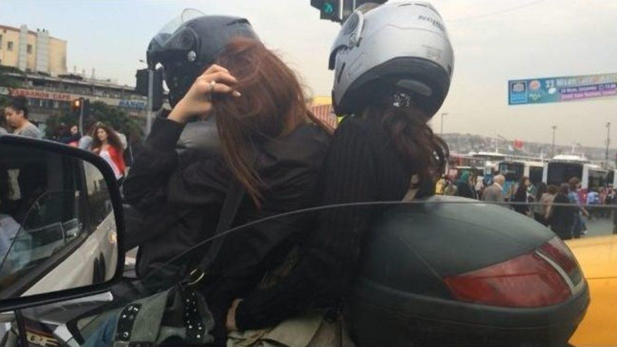 Beşiktaş’ta bir motosiklete binen 3 kişinin yaptığı tehlikeli yolculuk yürekleri ağza getirdi. Motosiklet üzerinde yer alan kasksız kadın ise diğer 2 kişinin arasında adeta kayboldu.Olay, dün saat 17.00 sıralarında Beşiktaş Çırağan Caddesi üzerinde yaşandı. Trafiğin yoğun olduğu saatte bir motosikletin üzerine 3 kişinin binmesi ve içlerinden birinin kasksız olması yürekleri ağza getirdi. Kasksız bir şekilde diğer 2 kişinin arasında seyir eden genç kadın, diğer ikisinin arasında adeta kayboldu. Kasksız şekilde ilerleyen genç bayanın saçlarıyla da oynaması dikkatlerden kaçmadı. Bir süre cadde üzerinde ilerleyen şahıslar daha sonra gözlerden kayboldu.