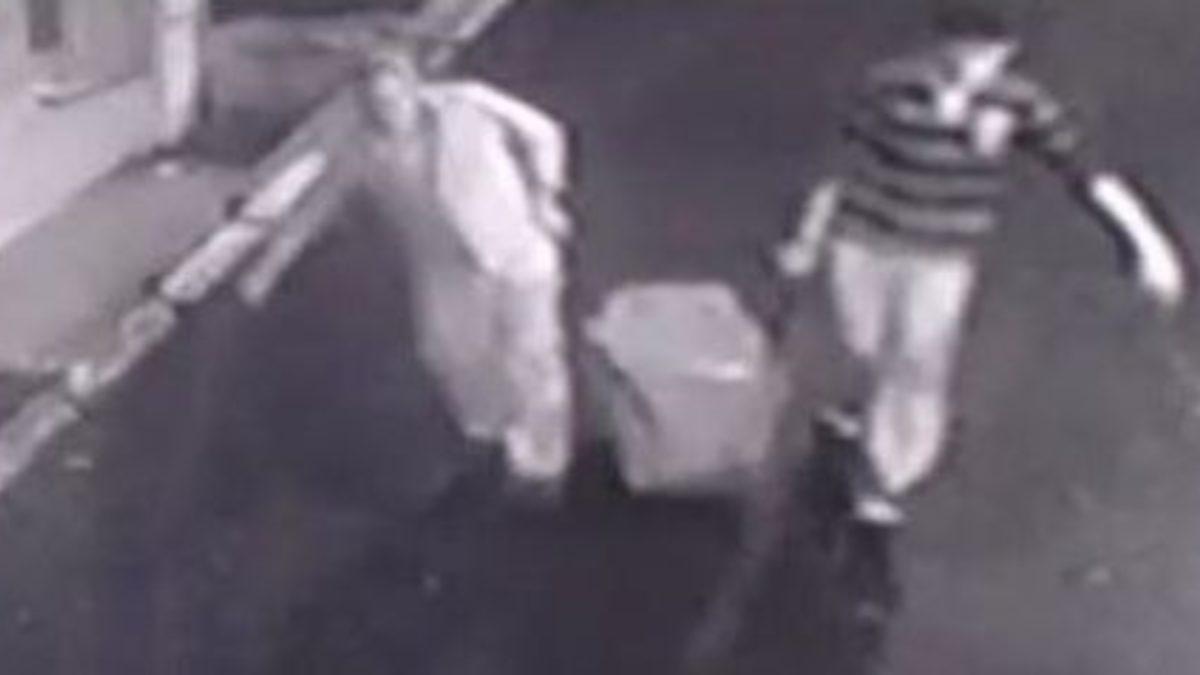 Beyoğlu’ndaki vahşetin güvenlik kamerası görüntüleri ortaya çıktı. Baba ve oğlunun valizdeki cesedi taşıdığı anlar, güvenlik kamerası tarafından saniye saniye kaydedildi.Beyoğlu Bülbül Mahallesi Aşıklar Sokak üzerinde dün sabah saatlerinde temizlik yapan belediye işçileri, valiz içinde bir kadın cesedi bulmuştu. Kadının, bıçaklanarak öldürüldüğü tespit edilirken, yaşanan vahşete ilişkin güvenlik kamerası görüntüleri ortaya çıktı.Görüntülerde cinayetin yaşandığı gece saat 02.30 sıralarında bir erkeğin sokakta keşif yaptığı görülüyor. Yaklaşık 5 dakika sonra da görüntüye ellerinde valizle yürüyen baba ve oğlu takılıyor. Valizi taşımakta zorluk çeken baba ve oğlunun koşar adımlarla ilerledikleri görülüyor.Olaydan sonra geniş çaplı inceleme başlatan polisin, dün akşam saatlerinde Beyoğlu’ndaki bir adrese baskın düzenlediği öğrenildi. Baskın sırasında bazı kişilerin gözaltına alındıkları belirtildi.