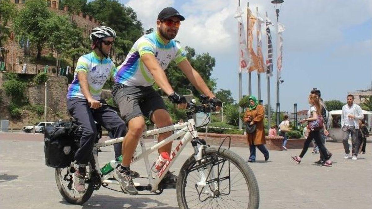 Görme engelli bisikletçi Mustafa İşcier, pedal çevirerek ülke ülke geziyor.Görme engelli Mustafa İşcier, engelli ve engelsiz iki kişinin kullandığı tandem bisikletle ülkü ülke gezerek engellilere teşkil ediyor. İşcier, “Bisiklet bir görme engelli için hürriyettir. Zira ben her bisiklete binişimde kuşlar gibi kendimi hür hissediyorum. Adeta onun üzerinde uçuyorum. Ayrıca bana göre doğa ve insan etkileşimi en iyi bisiklet üzerinde hissediliyor” dedi.Tandem bisikletiyle Türkiye turunu tamamlamak üzere olan engelli Mustafa İşcier ve engelsiz arkadaşı Sefa İpek, Bursa’yı bisikletle gezmenin keyfini çıkarttı. Mustafa İşcier ve arkadaşı Sefa İpek, pedal çevirerek 4 ülkede 2 bin 260 kilometre kat edecek. Yaptığı bisiklet turları hakkında bilgi veren İşcier, “Dernek üyelerinden Sefa İpek ile İstanbul-Çanakkale, İzmir-Bodrum, İstanbul-Eskişehir turunu tamamladık. Oradan Ankara’ya gittik. Bu, Sefa ile benim kırdığımız en son rekor. Kazdağları turu ve Kapadokya VelotrkGranFondo bisiklet yarışında tandem kategorisinde elde ettiğimiz birinciliği bu turlar sayesinde kazandık. Türkiye’nin yarısından fazlasını bisiklet ile dolaştım” şeklinde konuştu.Tandem bisikletin Türkçe karşılığının eşpedal olduğunu söyleyen İşcier, “Engellilerin denge ve kondisyonunu artırıyor. Tandem bisiklette spor ve sosyalleşme bir arada yapılıyor” dedi.Mustafa İşcier’in bisiklet arkadaşı Sefa İpek ise, “Biz görme engelli arkadaşlarla bisiklete biniyoruz. Tandem denen iki kişilik bisikletle önde bir gören arkada da bir görme engelli arkadaşımızla birlikte pedal çevirerek istediğimiz yere gidiyoruz” şeklinde konuştu.