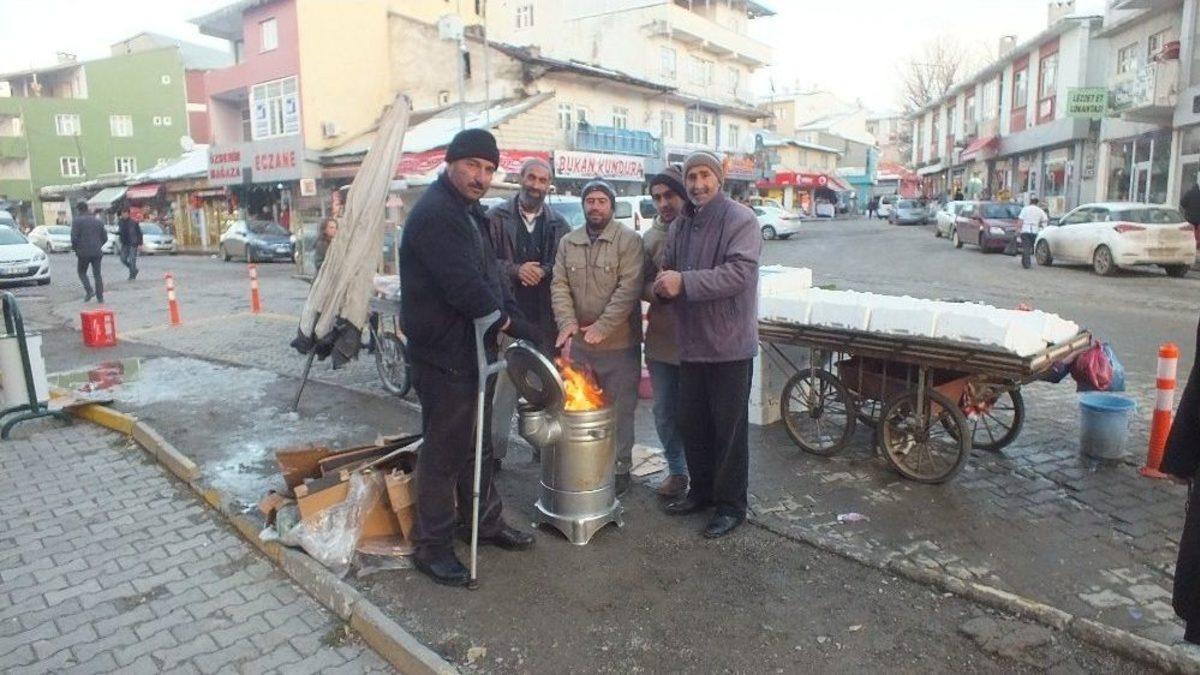Muş’un Malazgirt ilçesinde ekmek parası kazanmak için seyyar satıcılık yapan vatandaşlar, kar yağışıyla birlikte kaldırımda soba yakarak hem ısınıyor hem de satış yapıyor.İlçeyi etkisi altına alan soğuk hava ve kar yağışı, en çok seyyar satıcılık yapan vatandaşları etkiliyor. Yapacak başka işleri olmadığından, ailelerini geçindirmek için seyyar satıcılık yapan vatandaşlar, soğuk havadan korunmak için açık havada kurdukları sobayı yakarak ısınmaya çalışıyor. Yaz aylarında sorun yaşamayan seyyar satıcılar, kışın çarşı merkezinde kurdukları seyyar tezgahlarında satış yapmak zorunda kalıyor.“Balıkçı olduğumuz için genelde işlerimiz kış aylarında açılıyor”Çarşı merkezinde seyyar satıcılık yapan balıkçı Abdurrahman Akgün, dükkan kiralarının yüksek olmasından dolayı seyyar satıcılık yapmak zorunda kaldığını, soğuktan korunmak için de arkadaşlarıyla birlikte satın aldıkları sobayı yaktıklarını belirterek, "Burada arkadaşlarımızdan sebze sepetleri, karton kutuları ve ağaç getirip yakıyoruz. Balıkçı olduğumuz için genelde işlerimiz kış aylarında açılıyor. Havalar çok soğudu. Biz de arkadaşlarla aramızda para toplayarak soba aldık. Çarşı esnafından topladığımız kartonları ve çevreden bulduğumuz yakacakları kullanıyoruz. Dükkan kiraları yüksek olduğu için biz de mecbur burada satış yapmak zorunda kalıyoruz” ifadelerini kullandı.“Belediye başkanından bir an önce bize kulübe vermesini istiyoruz”Tek isteğinin belediye tarafından kendilerine bir kulübe yapılması olduğunu ifade eden balıkçı Nuri Karataş ise soğuktan dolayı açıkta duramadıklarını ve sobayla ısınmaya çalıştığını söyledi. Karataş, "Biz balıkçıyız, yıllardır bu işi yapıyoruz. Kış günleri zor oluyor. Geçim zorlaşıyor, burası zaten soğuk. Kulübemiz yok, dışarıda satış yapmak zorunda kalıyoruz. Geçimimiz sadece balıktır, günde ya bir araba satıyoruz ya da satamıyoruz, iş yoktur. Tek isteğimiz belediye başkanının bize bir kulübe yapmasıdır. Açıkta duramıyoruz, soğuktur. Gördüğünüz gibi sobayla ısınıyoruz. Tahta atıyoruz, 2 dakika yanıp sönüyor. Sobayla ısınamıyoruz, her tarafımız açıkta. Belediye başkanından bir an önce bize kulübe vermesini istiyoruz. Hepimiz biliyoruz ki kış mevsiminde geçim zorlaşıyor" şeklinde konuştu.“Adam başı 10 TL vererek bir tane odun sobası aldık”Soğuk havalar nedeniyle ısınmak için ateş yaktıklarını söyleyen Ümit Altın ise bazen de ısınmak için kahvehaneye gidip oturduklarını ve 2 arkadaş olarak tezgaha dönüşümlü baktıklarını söyledi. Kuru erzak ve köy peyniri sattığını belirten seyyar esnaf Ümit Altın, “Hiç istemesek de Allah’ın takdiri olan soğuk hava ve kış ayları geldi. Ben ve iki çocuğum ile burada tezgah açtık. Havalar birden soğudu. Ben soğuğa dayanabilirim, fakat çocuklarım çok üşüdükleri için buradaki seyyar esnaf arkadaşlar ile adam başı 10 TL vererek bir tane odun sobası aldık. Bu sobayı çarşı merkezine kurduk. Hemen tezgahlarımızın arkasında olduğu için çocuklar üşüdükleri zaman gidip sobanın başında ısınıyorlar” ifadelerini kullandı.