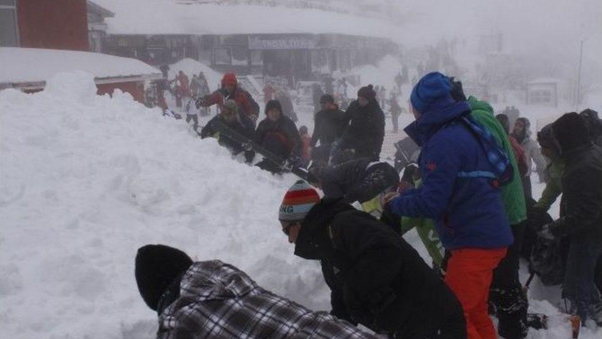 Kocaeli’nin Kartepe ilçesinde bulunan kayak merkezinde çatıdan düşen kar kütlesinin altında kalan iki kadın yaralandı.Uzayan yılbaşı tatilini fırsat bilen vatandaşlar Kocaeli’nin Kartepe ilçesindeki kayak merkezine akın etti. Tatili değerlendirmek üzere tesislere gelen tatilcilerden iki kadın, talihsiz bir kaza geçirdi. Bir buçuk metreyi aşan karlar üstünde kayak yaparak eğlenen iki kadın, otelin üzerinden düşen kar kütlesinin altında kalarak yaralandı. Kar kütlelerinin düşme anı ise otel yetkilisiyle röportaj yapan İHA muhabirinin kameralarına saniye saniye yansıdı.KAR ALTINDA KALANLARI ELLERİYLE KAZARAK KURTARDILARDüşen kar kütleleri altında iki kişinin kaldığını gören vatandaşların çığlık atması üzerine olay yerine gelen uzman ekip ve diğer tatilciler, iki kadının bulunması için seferber oldu. Kimi elleriyle kimi ise küreklerle kazmaya başlarken, çok geçmeden bir tatilciye ulaşıldı. Yaklaşık 10 dakikalık mücadelenin ardından vatandaşlar ve otel yetkililerinin çalışmasıyla kar altından çıkarılan yaralı kadın olayın şokuyla konuşamazken, bir süre sonra diğer tatilciye ulaşıldı. Bilinci açık olduğu görülen diğer tatilciye ise ilk müdahale otelin sağlık ekibi tarafından yapıldı. İlk müdahalesi yapılan tatilci, hastaneye götürüldü. Uzman ekipler ve vatandaşlar ise kar kütlesinin altında başka kişilerin olma ihtimaline karşın arama çalışması yaptı. Yaklaşık bir saatlik aramanın ardından kimseye ulaşılamadı.ÖNLEMLER ARTTIRILDIOlayın ardından açıklama yapan otel yetkilisi Nurettin Mutlugün, “Her sene olan bir hadise başımıza geldi. Güvenlik şeridi çektiğimiz alana tatilciler girmiş. Çatıda biriken karlar ise maalesef tatilcilerimizin üzerine devrilmiş. İlk müdahaleyi otelimizde yaptık, daha sonra hastaneye sevk ettik. Bu konuda tedbirlerimizi daha da arttıracağız. Görevlilerimiz çatıda biriken karları temizliyor” dedi.Öte yandan AFAD ekiplerinin yaptığı inceleme sonrasında kar altında kimsenin olmadığı tespit edildi. Jandarma konuyla ilgili soruşturma başlattı.