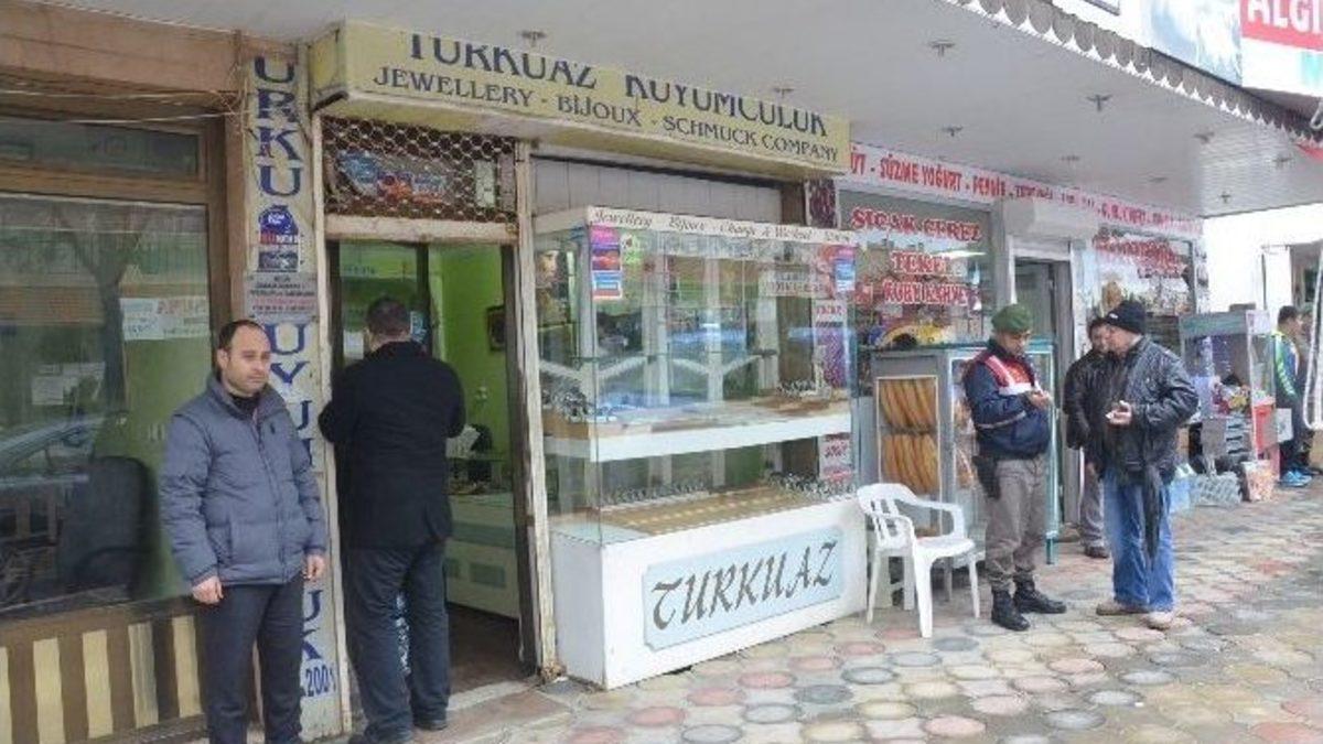 İzmir’in Seferihisar ilçesinde bir kuyumcu dükkanına giren üç soyguncu, 80 bin TL değerindeki altınları alarak kayıplara karıştı. Hırsızlık anı, başka bir iş yerinin güvenlik kameraları tarafından saniye saniye görüntülendi.Edinilen bilgiye göre olay, Seferihisar ilçesi Ürkmez Mahallesinde meydana geldi. Sabaha karşı saat 04.24 sıralarında gerçekleşen soygunda, üç hırsız, kuyumcu dükkanının önüne gelerek etrafı gözetliyor. Daha sonra etrafta kimsenin olmamasından faydalanan hırsızlar, demir makas ile kapının kilidini keserek içeriye giriş yapıyor. Bir soyguncu ise dışarıda gözcülük yapıyor. O anlar ise, başka bir iş yerinin güvenlik kameraları tarafından saniye saniye görüntüleniyor. Yaklaşık 10 dakika sonra dışarıya çıkan soyguncular, ellerinde bulunan çuvala doldurdukları ve piyasa değeri yaklaşık 80 bin TL değerinde olduğu belirlenen altınlara da alarak kayıplara karıştı.Kuyumcu dükkanının sahibi Mustafa Germe, soyguncuların soygun anında ana kasayı açamadıklarını ifade etti. Germe, "Tezgah altında 80 bin lira civarında parça altın ve gerdanlıklar vardı, onları almışlar. İyi ki ana kasayı açamamışlar" dedi.Olayla ilgili soruşturma başlatan jandarma ekipleri, şimdi her yerde üç hırsızı arıyor.
