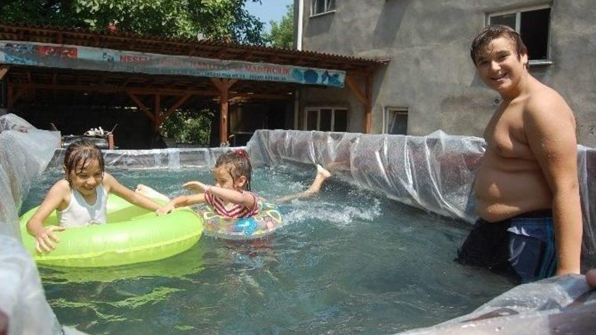 Zonguldak’ın Çaycuma ilçesinde, hava sıcaklığının 32 derece olması sebebiyle bir vatandaş, kamyonunun kasasını havuza çevirdi. Çocuklar ise kamyon kasasında serinlemenin keyfini çıkardı.Zonguldak’ın Çaycuma ilçesi Çay Mahallesi’nde bir nakliye şirketinin sahibi çocukların deniz keyfini rahat yaşayabilmeleri için yüksek tonajlı kamyonun içine branda gerip içini su ile doldurdu.Hava sıcaklığının ilçede 32 derece olduğunu fırsat bilen nakliye şirketi, çocukları eğlendirebilmek için ilginç yönteme başvurdu. Su dolu kamyonun içinde havuz keyfini yaşayan çocuklar böyle bir yöntemi kendilerine sağladıkları için teşekkür etmeyi ihmal etmediler.BELEDİYE BAŞKANINDAN AQUA PARK İSTEDİLERSu dolu kamyonda havuz keyfini yaşayan çocuklar Çaycuma Belediye Başkanı Bülent Kantarcı’dan aqua park isteyerek şunları söylediler: “Malum havalar sıcak gidiyor. Böyle bir yöntem bulundu. Çok beğendik. Su güzel. Belediye Başkanımızdan Çaycuma’ya aqua park istiyoruz. İnşallah çocukları sevindirir.”