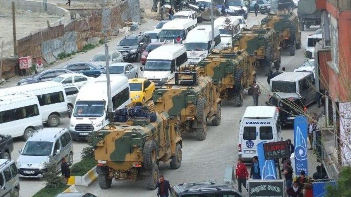 Hakkari’de, bahar mevsimiyle birlikte sınır boylarına asker sevkiyatı devam ediyor. Önceki gün çarşı merkezinden geçen 150 araçlık askeri konvoy, Hakkari Dağ ve Komando Tugay Komutanlığı’nda konuşlanmıştı. Asker ve silah taşıdığı belirtilen ‘Kirpi’ adı verilen 150 araçlık askeri konvoy, bugün tugaydan çıkarak yoğun trafikte ilerleyerek Çukurca ilçesine gitti.Sinyal kesici araçların eşlik ettiği Zap Vadisi’nde korucuların güvenliğini sağladığı konvoyun Çukurca ilçesinin sıfır noktasında bulunan askeri birliklere takviye olarak gönderildiği belirtildi.Hakkari Dağ ve Komando Tugay Komutanlığı’ndan kalkan helikopterlerin sınır boylarında devriye görevi yaptığı iddia edildi.Son günlerde artan askeri hareketliliğin nedeniyle ilgili henüz resmi bir açıklama yapılmadı.