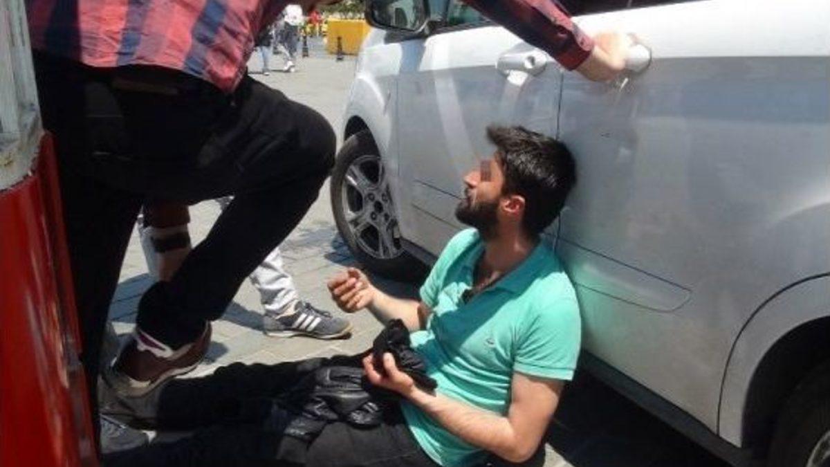 Beyoğlu Taksim Meydanı’nda uyuşturucu madde kullandığı iddia edilen bir gencin içler acısı hali yürekleri sızlattı. Sağlık ve polis ekipleri ile vatandaşların müdahale ettiği genç, yüzü suyla yıkanarak ayıltılmaya çalışıldı.İstanbul’da yaşanan uyuşturucu madde krizlerine bir yenisi daha eklendi. Beyoğlu Taksim Meydanı’nda kaydedilen görüntülerde, uyuşturucu madde kullandığı iddia edilen gencin hali yürekleri sızlattı. İçler acısı hali kameraya yansıyan genç, binlerce vatandaşın ortasında sızdı. Kendisini fark eden çevredeki vatandaşlar, durumu sağlık ve polis ekiplerine bildirdi. İhbar üzerine olay yerine gelen ekipler, genci ayıltmaya çalıştı. Sızdığı yerden kaldırılan genç, ayakta bile durmakta zorlandı. Bunun üzerine genç, yüzüne su vurularak ayıltılmaya çalışıldı. Vatandaşların da kendisiyle konuştuğu genç, ayılınca bir süre sonra kalkarak uzaklaştı.