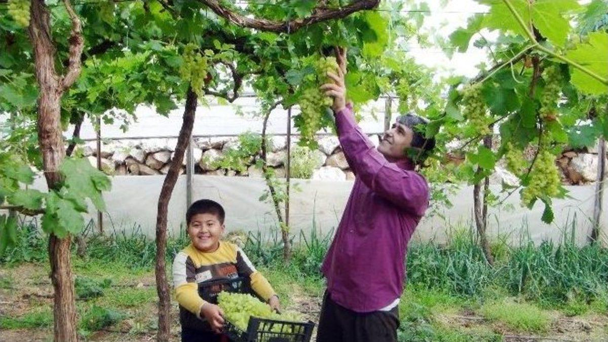 Mersin’in Silifke ilçesinde, örtü altında üretilen ve hasadı yapılan üzümün kilosu 15 TL’den alıcı buldu.Silifke’de ilk üzüm hasadı, Atayurt mahallesinde yapıldı. Örtü altında Yalova incisi cinsi üzüm üreten Adnan Çınar’ın arazisinde üzüm hasadı gerçekleştirildi. Çınar, hasatta yaptığı açıklamada, “Silifke’de üzümde ilk hasadı gerçekleştirdik. Hayırlı, uğurlu ve bereketli olmasını temenni ediyorum” dedi.Adnan Çınar, seradaki 1,5 dönümlük bağından 200 kilo üzüm hasadı yapıldığını kaydederek “Türkiye’de ilk defa Silifke’de üzümde ilk hasadı gerçekleştirdik. Hayırlı uğurlu ve bereketli olmasını temenni ediyorum” diye konuştu.Normal hasat sezonunun Haziran ayı sonunda başlayacağını ancak örtü ile yaklaşık 1 ay erken çıktığı için üreticilere önemli bir gelir getirdiğini söyleyen Atayurt Hali komisyoncularından Mustafa Bulut da, “Hasadı yapılan ilk üzüm tüccarlar aracılığıyla İstanbul ve Ankara’ya gönderiliyor. Açık araziye göre, örtü altından daha yüksek verim alınabiliyor. Örneğin; açık alanda bir dönümden ortalama 400 kilo ürün hasat edilirken, örtü altında bu rakam 3 tona çıkabilmektedir. Arkadaşımız üreticimiz Adnan Çınar, Silifke’de bir ilki gerçekleştirerek iyi bakım sonucu üzümünü Nisan ayının son haftasında çıkarmayı başardı” dedi.Silifke İlçe Tarım Gıda ve Hayvancılık Müdürü Abdullah Süngü ise, ilçe genelinde 18 bin 500 dekarlık alanda üzüm üretimi yapıldığını ve bu alanda 8 bin 500 ton üzüm hasadı gerçekleştirileceğini kaydetti.Süngü, "Üzüm üretiminin Uzuncaburç beldesi ile Göksu Vadisi köyleri olan Keben, Sabak, Karakaya, Kargıcak, Evkafçiftliği, Gündüzler ve Kepez köylerinde yoğun bir şekilde yapıldığını" ifade etti. Normal hasat sezonunun haziran ayı sonunda başlayacağını belirten Süngü, şunları söyledi:"Örtü altında ilçe genelinde 251 dönüm arazide üzüm üretimi yapılıyor. Açıkta yetiştirilen üzümlere oranla örtü altında erken çıkmasının yanında daha fazla da ürün alıyor. Yani açık alanda bir dönümden ortalama 400 kilo ürün hasat edilirken, örtü altında ise bu rakam 3 tona kadar çıkıyor. İlk hasadını yaptığımız Yalova incisi üzüm de üreticimize iyi bir gelir getirecektir."Silifke Ziraat Odası Başkanı Mahire Can da, çiftçilerin bilinçli üretim yapmaya başladığını belirterek, "İlçemiz genelinde 260 dönüm arazide örtü altı üzüm yetiştiriciliği yapılmaktadır. Turfanda meyvecilikte lider ilçe olan Silifke ve beldeleri, ürettiği bu ürünleri İstanbul, Ankara, İzmir, Konya, Adana gibi metropol şehirlere göndermektedir. Kilosu şuan kalitesine göre 15 TL’yi bulan üzüm üreticisine önemli bir gelir kapısı olmuştur" diye konuştu.