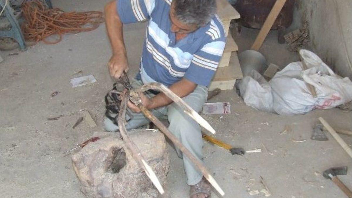 Kayseri’nin Yahyalı ilçesinde marangoz Süleyman Sabırsız, talep olmamasına rağmen dede mesleğini yaşatmaya çalışıyor.Kayseri’nin Yahyalı ilçesinde, küçük bir atölyede unutulmaya yüz tutmuş çiftçi aletleri yapan Süleyman Sabırsız (40), dedesinden ve babasından öğrendiği mesleğini yaşatmaya çalışıyor. Geçmişte ilçenin başlıca geçim kaynaklarından olan halı dokumacılığı için 'halı tarağı' da yapan Sabırsız, "Günde 100 adet halı tarağı yaptığımızı hatırlıyorum ama şimdi ne halı dokuyan kaldı ne de tarak siparişi veren'' dedi.Her aletin motorlusunun çıktığını ifade eden Sabırsız, tarım aletlerinden anadut ve yaba ile halı tokucu, salça küreği ve ilçenin yöresel yemeklerinden olan bezdirme için dibek üretiyor. Bir anadutun yapımının bir gününü aldığını belirten Sabırsız, anadutu 20 TL’ye sattıklarını söylüyor. Ayda birkaç tane ancak satabildiklerini söyleyen usta, ahşap tarım aletlerini iş yapmaktan çok, şark köşesine süs olarak isteyenlerin daha fazla olduğunu belirtiyor. İşlerinin bahçede başladığını anlatan usta, şunları söyledi:''Bizim işimiz bahçede başlıyor. Önce uygun ağacı bulup keseceksiniz. Daha sonra yakma işlemi var. Yaktıktan sonra törpüleyip zımparalıyoruz. Bir de özellikle anadutu sıkıca birbirine tutturmanız için kafa derisi bulmanız gerekiyor. Büyükbaş hayvanın kafa derisi sert olduğu için kopma yapmaz.''Yapılması güç olan ve zaman gerektiren aletin dibek olduğunu belirten Süleyman Usta, Dibek yapımını ise şöyle anlattı:''Dibek işçiliği en zor olan aletimiz bizim. Ceviz ağacından yapılması makbuldür. Ceviz olursa uzun seneler dayanır ve çatlama yapmaz. Dibek bizim yöremizde bezdirme yapmak için kullanılır. Et, kuşbaşı haline getirilir sonra köftelik bulgur ve bazı malzemelerle karıştırdıktan sonra bu dibekin içinde bir süre döversiniz. İyice ezilince de köfte gibi yuvarlayıp pişirirsiniz. Yani dibek bunun için kullanılıyor yöremizde. Bunu yapmak birkaç günümüzü alıyor. Ağacı kestikten sonra içini oymak zamanınızı alıyor. Onun karşılığı da 20 TL. Satıyor musunuz derseniz, 3 ayda bir tane belki. Dediğim gibi kullanmaktan çok süs için alan oluyor. Şehir dışında yaşayan hemşehrilerimiz, ben dedemde görmüştüm diyerek evinde süs olarak bulundurmak için yaptırıyor. Yoksa her şeyin makinesi çıktı, öyle elinde bezdirme döven falan kalmadı.''Sonbaharın etkisini gösterdiği bugünlerde çok sayıda salça küreği yaptığını söyleyen Süleyman Usta, bir haftada 15 tane sattığını kaydetti. ''Harman zamanı anadut, yaba, salça zamanı salça küreği satılıyor'' diyen Sabırsız, Halı tokucunun ise neredeyse 10 senedir hiç satılmadığını ifade etti. İlçeyi ikiye bölerek akan Kocaçay’ın kenarında kadınların halı yıkarken kullandıkları halı tokucunun tarih olduğunu söyleyen Süleyman Usta, ''Aslında çok da geçmiş değil. Her şey çok çabuk değişti. İlçemizde daha 10 sene öncesine kadar halılar Kocaçay’da yıkanır, tokuçlarla dövülürdü. Aslında temizlikten çok, bir gelenekti. Bu gelenek de makinelerle birlikte tarih oldu’’ dedi.Dedesinden kalan bir çok el işçiliği malzemeleri sakladığını söyleyen Sabırsız, ''Dedem kağnı yapardı. Dedemden kalan kağnı mazısına sürekli bakıyorum ama yapmaya cesaret edemiyorum çünkü fabrikadan çıkan bir aracın dingili ne kadar incelik gerektiriyorsa bu kağnı mazısı da aynı inceliği istiyor'' diye konuştu.Süleyman Usta, mesleği ortaokul öğrencisi oğluna da öğrettiğini sözlerine ekledi.