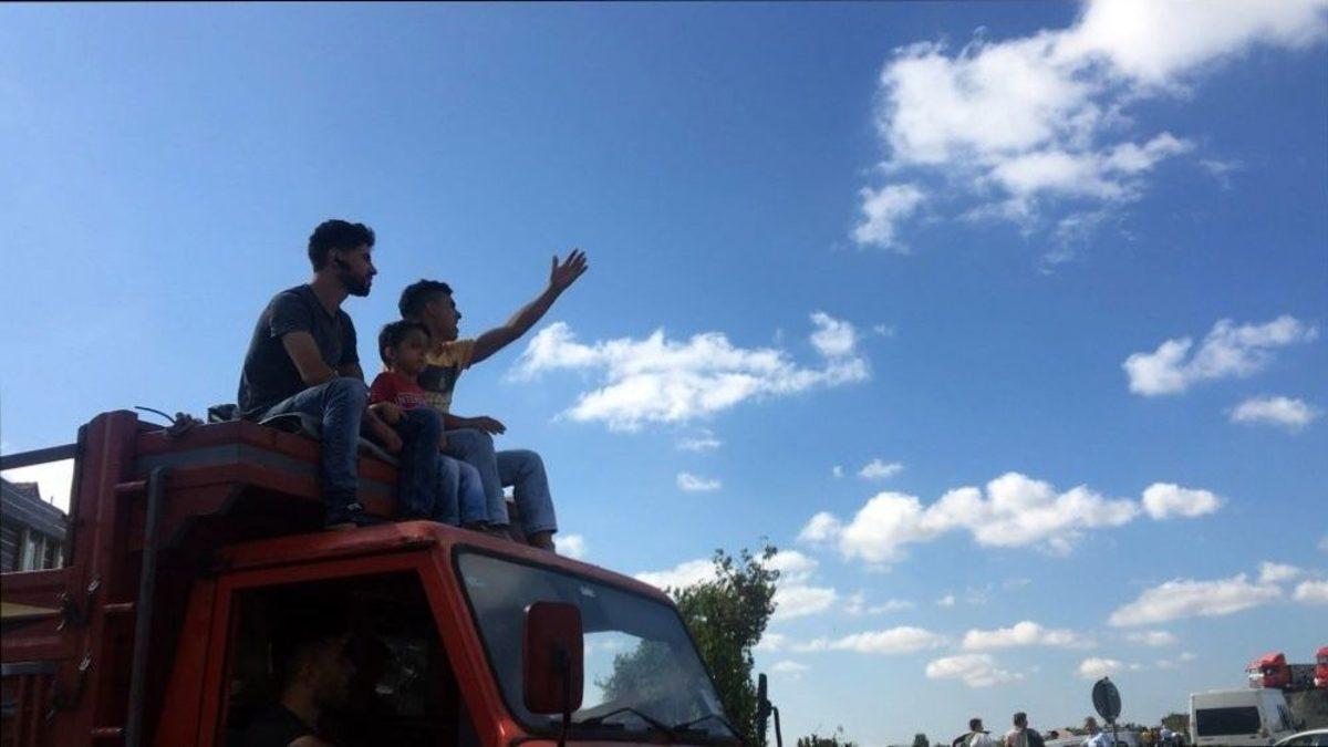Sultangazi’deki kurbanlık alanına giden bir kamyonunun tepesindeki 1’i çocuk 3 kişinin tehlikeli yolculuğu kameralara yansıdı....