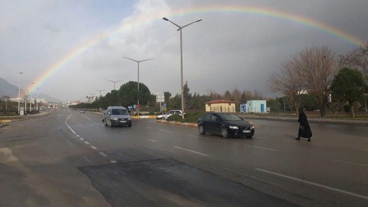 Denizli’nin Merkezefendi ilçesi Adalet Mahallesi’nde gökkuşağı sürprizi yaşanırken, aynı saatlerde Pamukkale ilçesi Uzun Pınar Mahallesi’nde ise kar manzaraları dikkat çekti.Denizli’de yağmurun ardından çıkan gökkuşağı görenleri hayran bıraktı. Merkezefendi ilçesi Adalet Mahhalesi’ndeki gökkuşağı görüntüsü vatandaşların büyük ilgisini çekti. Aynı dakikalarda ise merkeze 20 kilometre uzaklıktaki Pamukkale ilçesi Uzunpınar Mahallesi’nde de kar yağışı dikkat çekti. Vatandaşlar sosyal medya hesaplarından bu anları paylaşırken, şubat ayına kadar kurak geçen Denizli’de yağmur ve kar yağışı sevinçle karşılandı.