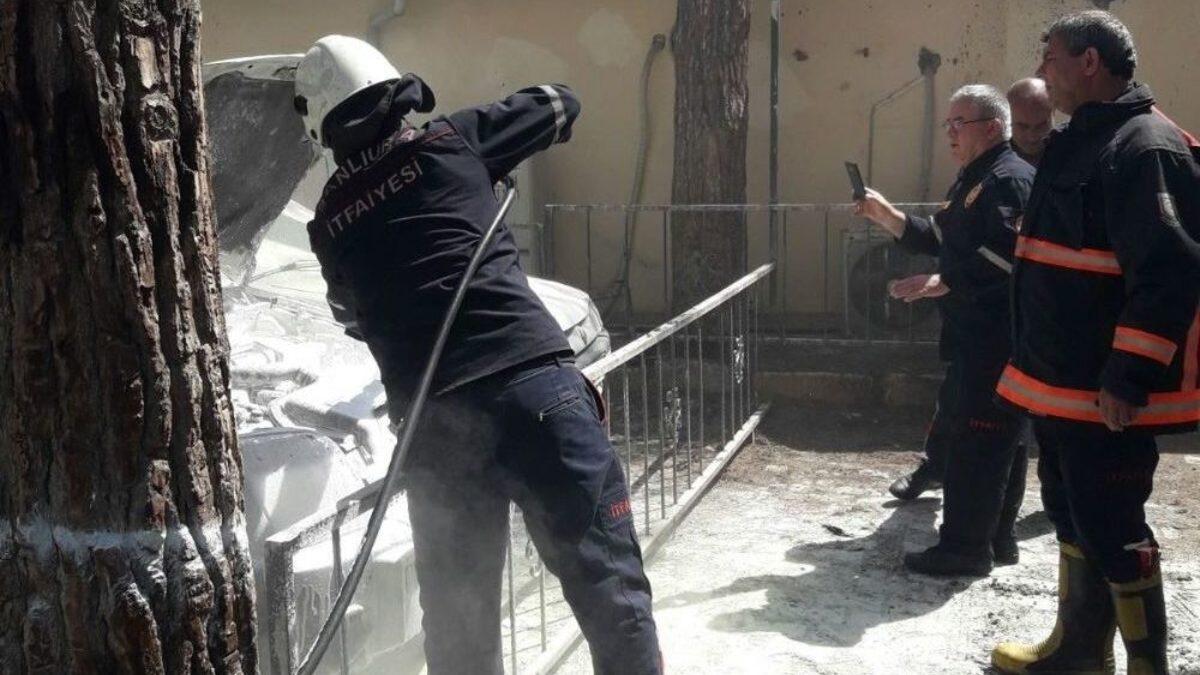 Şanlıurfa’nın Birecik ilçesinde park halindeki araç alev aldı. Aracın yanma anı ve vatandaşların söndürme çabası cep telefonuyla kaydedildi.Edinilen bilgiye göre olay, Şanlıurfa’nın Birecik ilçesinde yaşandı. Hastane bahçesinde park halinde olan Menderes A.’ya ait 27 L 1844 plakalı hafif ticari araç, bilinmeyen bir nedenle alev aldı. Motor kısmından yükselen alevler kısa sürece aracın ön kısmını sardı. Aracın yanmaya başladığını gören sürücü, arka koltuktaki eşyaları çıkartmaya çalışırken yakını olan bir kadın büyük panik yaşadı. Aracın patlayacağını söyleyen kadın, sürücüden araçtan uzaklaşmasını istedi. Çevredekilerin getirdiği yangın söndürme tüpüyle araca ilk müdahale yapıldı. Vatandaşların onlarca yangın söndürme tüpüyle müdahale ettiği aracı söndürmek kolay olmadı. Uzun çabalar sonucu yangın söndürülürken olay yerine gelen itfaiye ekipleri, soğutma çalışması yaptı.Yangının çıkış nedeninin araştırıldığı öğrenildi.