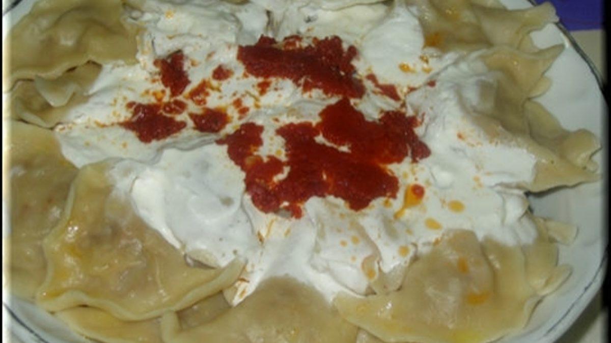 Patatesleri yıkayıp tencereye koyun ve üzerini geçecek kadar su ilave edin. Orta dereceli ateşte, patatesler yumuşayana kadar haşlayın. Haşlanan patatesleri süzüp kabuklarını soyun. Patatesleri çatalla ezip püre haline getirin ve baharatları ilave edip karıştırın. Patatesli harcın soğuması için kenarda bekletin. Hamurunu hazırlamak için gerekli malzemeleri yoğurma kabına alın. Tüm malzemeler özleşene kadar yoğurun. Elde ettiğiniz hamuru 4 bezeye ayırın. Bezeleri; merdane ya da oklava yardımıyla orta kalınlıkta açın. Açtığınız hamuru 2x2 cm’lik kare olacak şekilde kesin. Her bir karenin ortasına 1 tatlı kaşığı patatesli harç koyun. Bohça ya da üçgen şeklinde kapatın. Mantıları tepsiye dizip 15 dakika bekletin. Büyük bir tencereye kaynar suyu alıp tuzu ilave edin. Mantıları kaynar suya koyup yaklaşık 20 dakika yumuşayana kadar haşlayın. Haşlanan mantıları süzüp servis tabağına alın. Sos tavasında nı eritip kırmız pul biberi ilave edin. Bir taşım kaynatıp mantının üzerinde gezdirin.