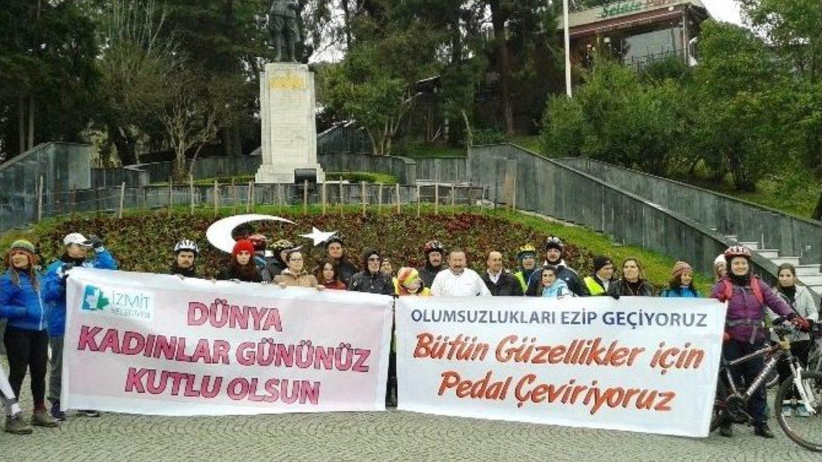 İzmit Belediye Başkanı Dr. Nevzat Doğan’ın yaklaşık 6 yıl önce startını verdiği bisiklet turunda bu hafta pedallar, Kadınlar Günü anısına çevrildi.Belediye Başkanı Dr. Nevzat Doğan’ın da katıldığı bisiklet turu, Yahya Kapatan mahallesindeki Hanımeli Kültür Merkezi önünden başlatıldı. Başkan Doğan ve beraberindekiler, “Olumsuzlukları ezip geçiyoruz, bütün güzellikler için pedal çeviriyoruz” yazılı pankartlar eşliğinde yürüyüş yolunu takip ederek Atatürk Anıtı’na geldiler. Burada saygı duruşunda bulunan grup hareket ettikleri noktaya gelerek turu tamamladılar.Başkan Doğan, kadınları yılda sadece bir gün değil 365 gün boyunca unutmamak gerektiğini belirterek, “Bizim gönlümüzde kadınlar günü yılda bir gün değil 365 gün boyunca devam eder. Kadınlar dünyanın temelidir. Özellikle son yıllarda kadınlara yönelik çok farklı olumsuzluklara tanık oluyoruz. Kadına şiddetin ön planda olduğunu gördükçe bundan büyük üzüntü duyuyoruz. Kadına şiddet gösteren erkek değildir, zavallı bir varlıktır. Biz, bunları hemcinsimiz olarak görmüyoruz. Kadına şiddet uygulayanlar ruh sağlığı bozuk kişilerdir. Bu hastalıklı kişilerle mücadeleyi aslında kadınlardan çok biz erkeklerin vermesi gerektiğine inanıyorum. Kadın haklarının korunmasında biz erkeklere daha çok görev düşüyor” dedi.Kadına el kaldırmanın Türk kültüründe yeri olmadığını belirten Doğan, “Dinimiz de buna şiddetle karşı çıkar. Peygamber Efendimiz ‘Cennet anaların ayakları altındadır’ diyerek kadınların önemini çok net bir şekilde ortaya koymuştur. Büyük Önder Atatürk’ün de dünyada kadına seçme ve seçilme hakkı verilmemişken Türk kadınına bu hakkı verdiğini unutmayalım. Dünyada her şey kadının eseridir. Bu gerçeği asla unutmamak gerekir” diye konuştu.