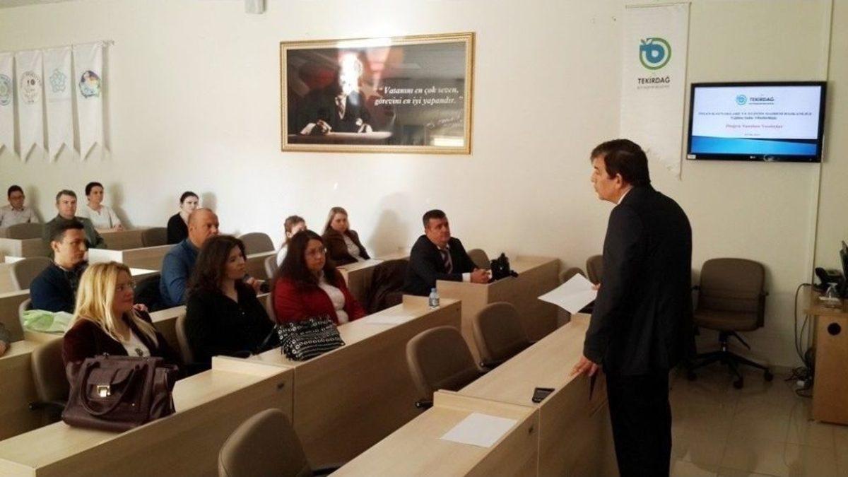 Tekirdağ Büyükşehir Belediyesi Eğitim Kurulu Kararı ile İnsan Kaynakları ve Eğitim Dairesi Başkanlığı Eğitim Şube Müdürlüğü tarafından, belediye birimlerinde görev yapan personelle ‘farkındalık eğitimi’ verildi.Eğitim kapsamında, hizmet verme sürecinde Tekirdağ Büyükşehir Belediyesine gelen engelli ve yaşlı vatandaşlara davranış biçimleri, karşılama ve iletişim kurma, vizyon geliştirme, engelli ve yaşlı hizmetlerine yönelik bilgi edinmelerini sağlama, engelli ve yaşlı vatandaşlara yönelik, fiziksel, psikolojik sözlü şiddet içeren her türlü tutum ve davranışlara yönelik daha duyarlı yaklaşım bilincinin sağlanması ve engelli bireylerin toplumsal yaşama uyumları, karşılaştıkları sorunların oluşturduğu psikolojik travmaların en aza indirgenmesi konulu “farkındalık eğitimi” düzenlendi. Üç oturumdan oluşan eğitim, Belediye Meclis Salonunda gerçekleşti.Açılış konuşmasını Sosyal Hizmetler Dairesi Bakanı Talat Atay’ın, sunumunu Sosyal Hizmetler Dairesi Başkanlığı Engelli ve Yaşlı Hizmetleri Şube Müdürlüğü personeli Murat Yıldız’ın yaptığı eğitim, Genel Sekreter Yardımcısı Dr. Kaan Gaytancıoğlu ve İnsan Kaynakları ve Eğitim Dairesi Başkan Recai Suvari’nin katılımıyla gerçekleştirildi.