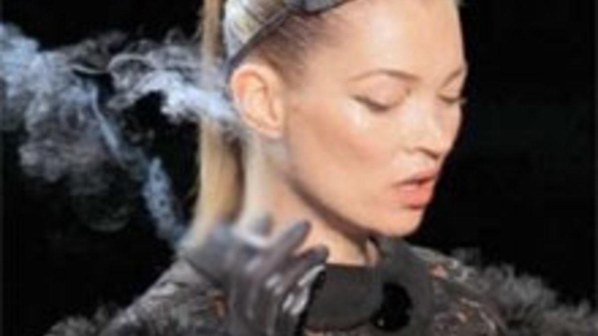 Top model Kate Moss, Paris Moda Haftası’nda ABD’li tasarımcı Marc Jacobs’un Louis Vuitton için tasarladığı 2012 Sonbahar-Kış koleksiyonunun tanıtıldığı defilede podyuma çıktı. Geçen yıl 12 milyon sterlinlik (31.2 milyon TL) kazancıyla dünyanın en çok kazanan modellerinden biri olan Moss podyumda sigara içti. Moss’un defilede sigara içmesi sigara karşıtı kampanya yürüten sağlık kuruluşlarını kızdırdı. Sağlık yetkilileri “Dünyanın dört bir yanında sigarayla mücadele için kampanyalar düzenleniyor, yeni düzenlemeler getiriliyor. Ünlü bir modelin podyumda sigara içmesi kabul edilemez” dedi.