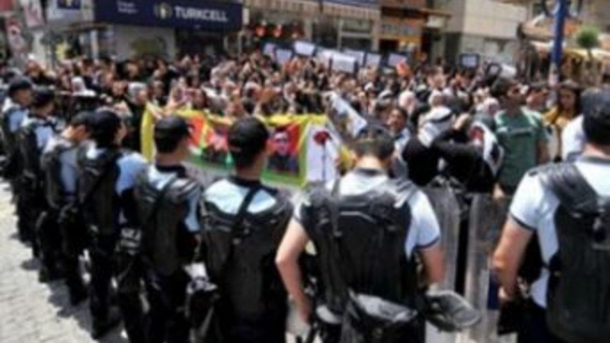 Mersin’de BDP Eş Genel Başkanı Gültan Kışanak ve Iğıdır Milletvekili Pervin Buldan’ın da katıldığı açık hava toplantısı öncesi, uyarılara rağmen yasa dışı pankart açan göstericilere polis müdahale etti