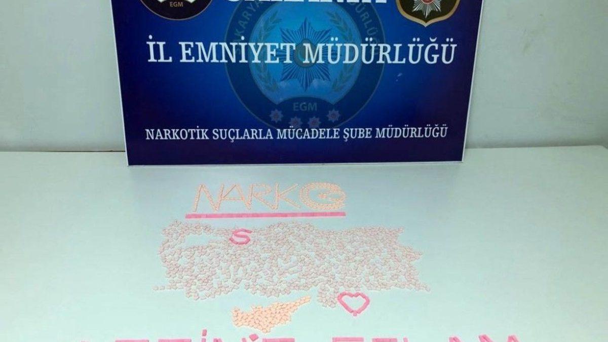 Sakarya İl Emniyet Müdürlüğü Narkotik Suçlarla Mücadele Şube Müdürlüğü ekiplerince ikametinde yapılan aramalarda bin 458 adet extacy hap ele geçirilen şahıs tutuklanarak cezaevine gönderildi. Polis ekipleri ise yakalanan haplar ile oluşturdukları Türkiye haritasının altına ’Afrin’e Selam’ yazarak Mehmetçiğe de selam yolladı.Sakarya İl Emniyet Müdürlüğü Narkotik Suçlarla Mücadele Şube Müdürlüğü ekiplerince uyuşturucu operasyonları hız kesmeden sürüyor. Bu kapsamda Sakarya İl Emniyet Müdürlüğü Narkotik Suçlarla Mücadele Şube Müdürlüğü ekiplerince durumundan şüphelenilen A.G. (30) isimli bir şahsın ikametine operasyon düzenlendi. Gerçekleştirilen operasyon sonucu ikamette yapılan aramalarda bin 458 adet extacy hap ele geçirildi. Gözaltına alınan şahıs emniyetteki işlemlerinin ardından Sakarya Üniversitesi Eğitim ve Araştırma Hastanesi’nde geçirildiği sağlık kontrolü sonrasında adliyeye sevk edildi. Hakim karşısına çıkan A.G. tutuklanarak cezaevine gönderildi."Polislerden Afrin mesajı"Öte yandan, Narkotik Suçlarla Mücadele Şube Müdürlüğü ekipleri, ele geçirilen extacy haplar ile oluşturdukları Türkiye haritasının altına “Afrin’e Selam” yazarak Türk Silahlı Kuvvetlerinin Suriye’nin Afrin bölgesinde yürüttüğü Zeytin Dalı Harekatı’nda görev yapan Mehmetçiğe de selam gönderdi.