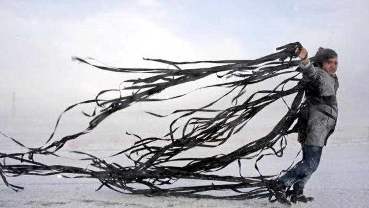 Turgay İPEK/ ERZURUM, Erzurum- Bingöl karayolunda bulunan Konaklı Kayak Merkezine 8 kişilik bir ekiple giden Prof.Dr. Kavukçu, başından ayaklarına kadar vücudunun hemen her yerine bağladığı üçer metre uzunluktaki siyah kurdelalarla fırtınaya karşı koşmaya başladı. Hızı zaman zaman 80 kilometreye varan fırtınada yaklaşık 40 dakika süren çekimlerde tipi nedeniyle kardan adama dönen Prof.Dr. Mehmet Kavukçu ve ekibi, çalışır halde bekleyen otomobillerde ısınmaya çalıştı. Yaptığı sanatsal etkinlikle hayatı yeniden yorumlamaya çalıştığını belirten Güzel Sanatlar Fakültesi Dekanı Prof. Dr. Mehmet Kavukçu, şunları söyledi:
