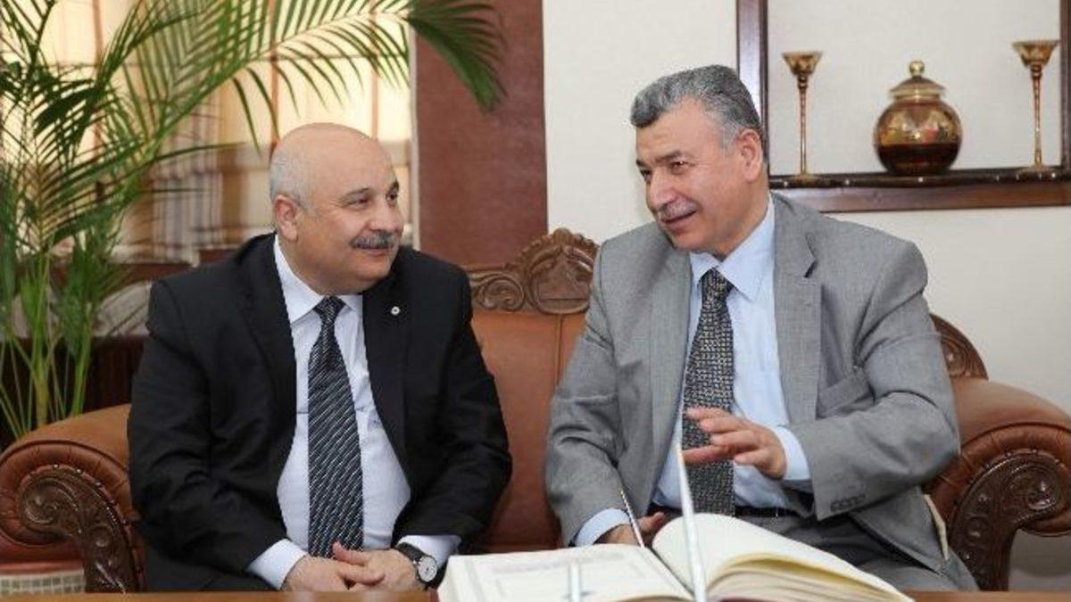 ‘Hammadde Zenginliğimiz’ konulu konferans vermek üzere Adıyaman’da bulunan İstanbul Ticaret Üniversitesi Mücevherat Mühendisliği Bölüm Başkanı Prof. Dr. Zeki Çizmecioğlu, Adıyaman Üniversitesi Rektörü Prof. Dr. Mustafa Talha Gönüllü’yü makamında ziyaret etti.