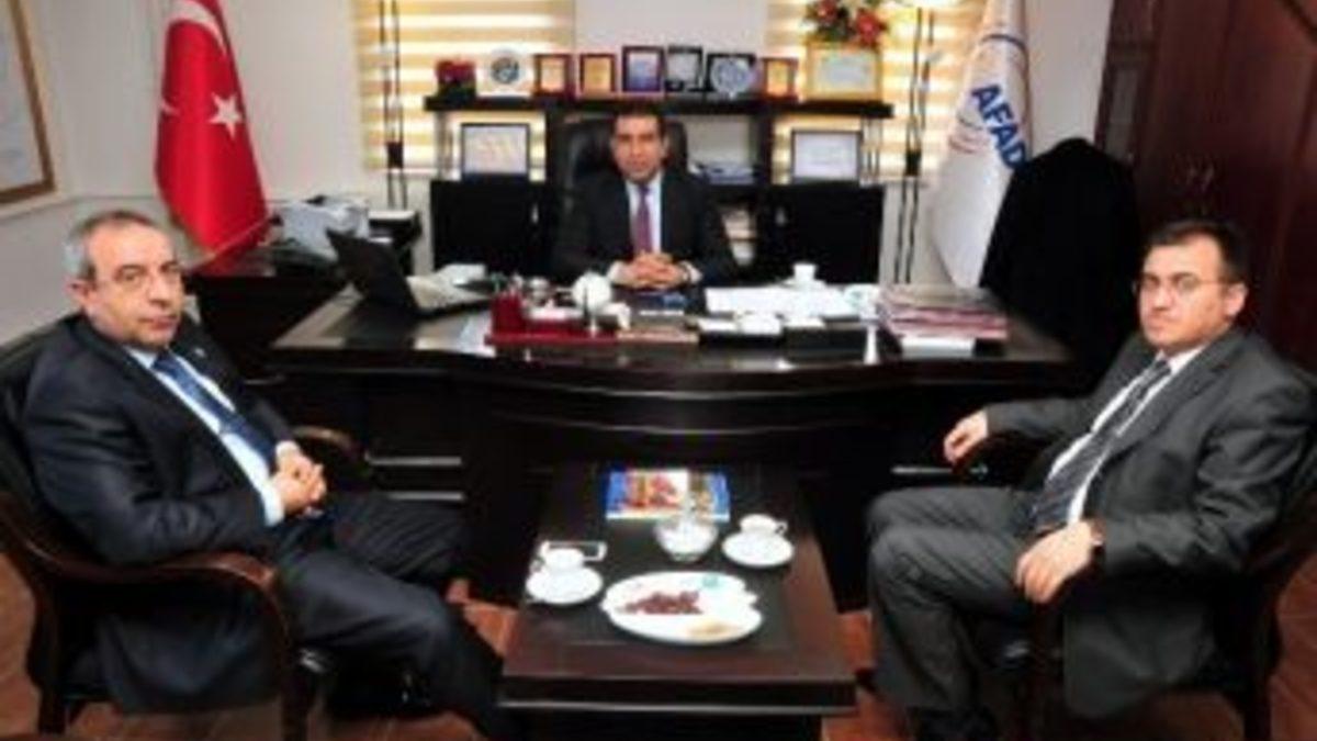 Yüzüncü Yıl Üniversitesi (YYÜ) Rektörü Prof. Dr. Peyami Battal, Van İl Afet ve Acil Durum (AFAD) Müdürü Cafer Giyik’i ziyaret etti.YYÜ Rektörü Prof. Dr. Peyami Battal ve Rektör Yardımcısı Prof. Dr. Ahmet Kazankaya, Van AFAD Müdürü Cafer Giyik’i ziyaret ederek depremde AFAD’ın üniversiteye verdiği desteklerden dolayı teşekkür etti.Rektör Prof. Dr. Battal ve Yardımcısı Prof. Dr. Kazankaya’yı kapıda karşılayan AFAD Müdürü Giyik, ziyaretten duyduğu memnuniyeti dile getirdi.Rektör Prof. Dr. Battal ise, depremden sonra birçok resmi kurum ve sivil toplum kuruluşunun üniversiteye yardım ettiğini ifade ederek, “AFAD’da depremde üniversitemize birçok yardımla birlikte konteyner vererek destek oldular. Biz bu yardımlardan dolayı müdür bey şahsında AFAD’a teşekkür etmek için ziyarette bulunduk” dedi.Yaklaşık bir saat süren ziyaretin ardından AFAD Müdürü Giyik, YYÜ Rektörü Prof. Dr. Battal ile yardımcısı Prof. Dr. Kazankaya’yı kapıya kadar uğurladı.