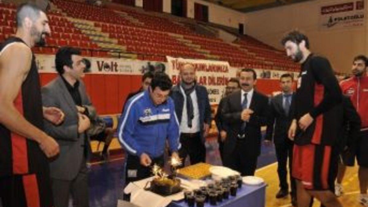 Selçuk Üniversitesi (SÜ) Rektörü Prof. Dr. Hakkı Gökbel, Torku Konya Selçuk Üniversitesi Basketbol takımını antrenman sırasında ziyaret ederek, hafta sonu oynanacak TOFAŞ maçı öncesi sporculara ve teknik heyete moral verdi.TOFAŞ galibiyeti için oyunculardan söz alan Rektör Gökbel, “Çok önemli bir maça çıkacağız. Anadolu Efes maçı başta olmak üzere daha önce kazandığımız karşılaşmalardaki performansınızı hepimiz biliyoruz. Size güveniyor ve karşılaşmadan galibiyetle ayrılacağınıza inanıyoruz” dedi.Torku 19 Mayıs Spor Salonu’ndaki antrenmanın son bölümüne katılan Rektör Prof. Dr. Gökbel’e Rektör Yardımcısı Prof. Dr. Mehmet Musa Özcan, Kulüp Başkanı Yunus Derebağ ve yöneticiler de eşlik etti.“GERİLİM, MAÇI KAZANMAYA YETECEK ÖLÇÜDE OLMALI”Rektör Gökbel, ilk olarak Başantrenör Aziz Bekir’den takımın son durumu hakkında bilgi aldı. Cumartesi günü saat 16.00’da oynanacak müsabakanın kendileri için önem arz ettiğinin altını çizen Prof. Dr. Gökbel, “Daha önceki maçlardaki sergilediğiniz performansı hepimiz biliyoruz. İyi gününüzde olduğunuzda yenemeyeceğiniz takımın olmadığını düşünüyorum. Takım açısından önemli bir maç olduğunu biliyorum ama bunun stresini yaşamanızı istemiyorum. Spor fizyoloğu olduğum için maç anındaki psikolojinin ne kadar önemli olduğunu ve maç esnasında yüksek düzeyde gerilimin olmaması gerektiğini biliyorum. Gerilim, maçı kazanmak için gerekli olan performansı yakalamaya yetecek ölçüde olmalı. Daha fazlası zarar verir. Aslında bu maçlarda geçerli olan tek kural vardır. Maçı kim daha çok isterse o kazanacaktır. Son maçlarınızda gösterdiğiniz takım uyumu ve dirençle birlikte sahada ortaya koyduğunuz iyi oyun sayesinde bu maçı kazanabileceğinize yürekten inanıyorum ve hepinize başarılar diliyorum” diye konuştu.Rektör Prof. Dr. Hakkı Gökbel, daha sonra teknik heyet ve oyunculara getirdiği baklavadan ikram etti. Ayrıca Kulüp Başkanı Yunus Derebağ ve oyunculardan Cem Coşkun’un doğum günü pasta keserek kutlandı.
