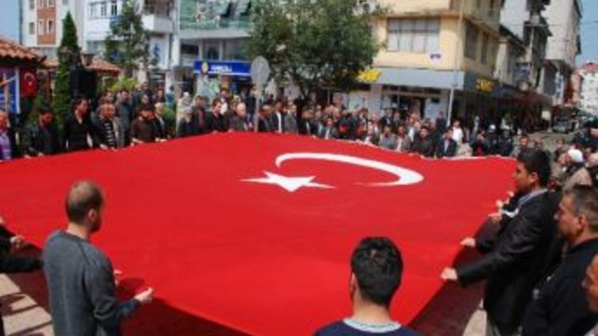 İlçenin Namık Kemal meydanında “Tek Bayrak, Tek Millet, Akıllı Ol Hükümet” sloganı ile bir araya gelen gençler açtıkları dev Türk bayrağını dalgalandırarak hep bir ağızdan slogan attılar.