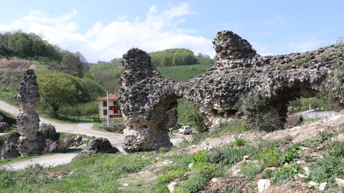 Hasanlar Barajı olarak bilinen barajdan akan ve Melen Çayı’nı besleyen akarsudan gelen suları Konuralp Antik Kenti’ne taşıdığı tahmin edilen su kemerleri, 2’nci grup anıt eser olarak tescil edildi. Uzunluğu 160, yüksekliği ise yaklaşık 20 metre olan su kemerleri Roma ve Helenistik dönemlerden bugüne ulaşan önemli yapılardan biri olma özelliği taşıyor. Horasan harçlı karışık kesme ve moloz taştan iki katlı olarak inşa edilen kemerlerin günümüze sadece ayak kısımlarına ulaşılırken, bir kısmının halen toprak altında olduğu tahmin ediliyor.